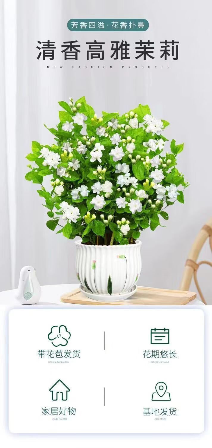 Jasmine seedling potted plant with buds Jiuli Xiang old pile mosquito repellent flower plant indoor strong fragrance blooms in all seasons and easy to grow Large jasmine flowers 4-6 buds are full and pots are not included