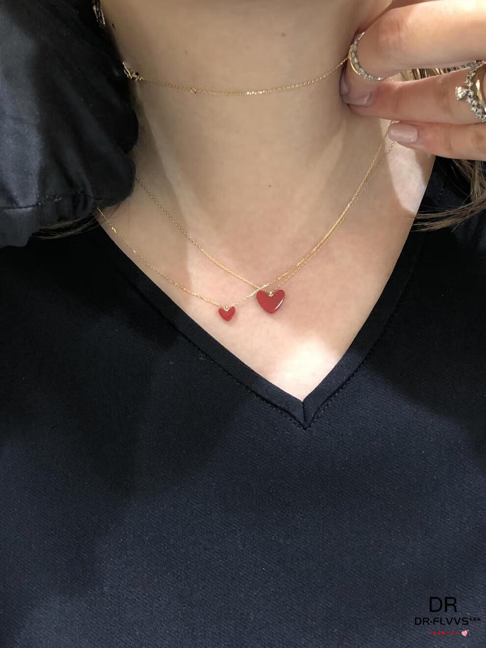 Fat Donglai's same 18k gold red heart necklace purchased from Japan for little girl, yellow size, small red heart, small size