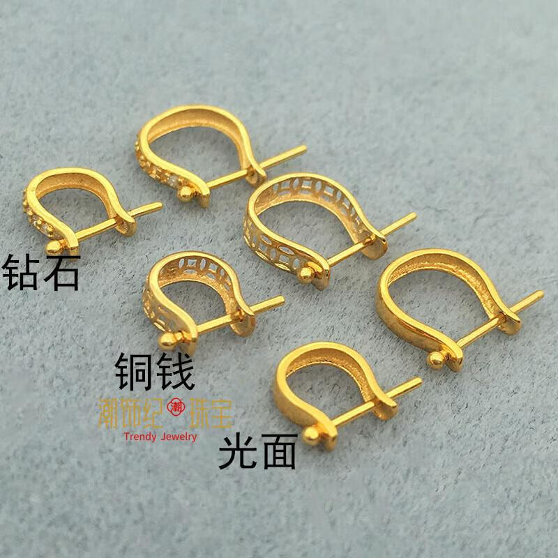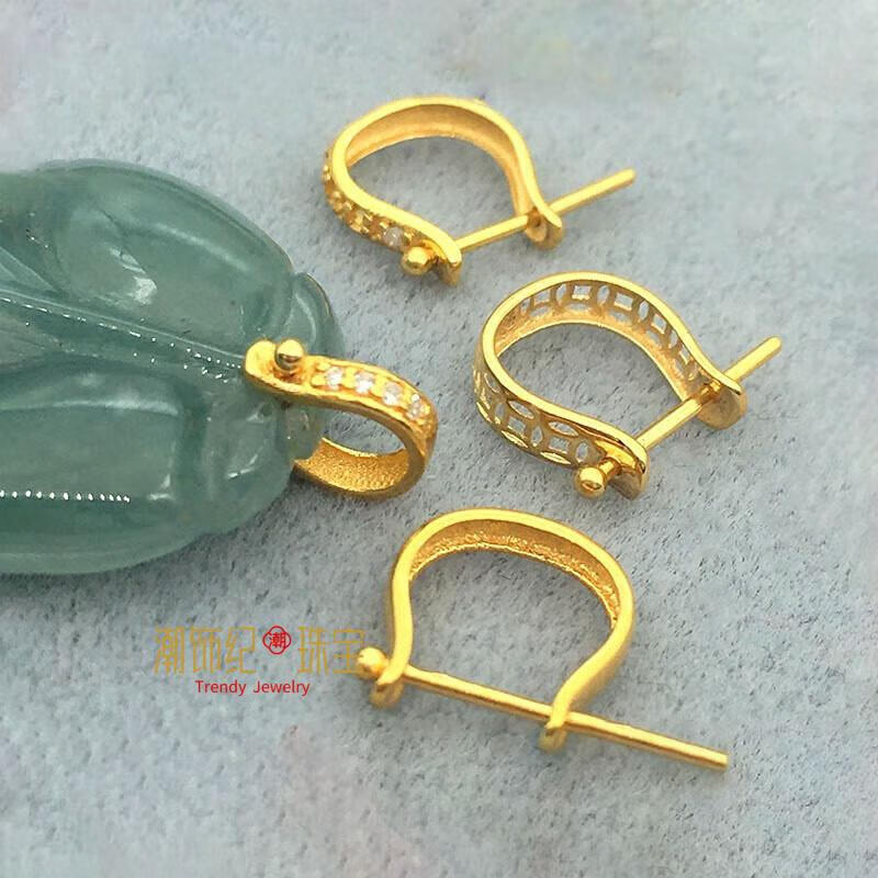DL 1998 Fat Donglai same style 18k gold universal buckle U-shaped 18K gold plated button pendant jade pendant clip glossy style - large size