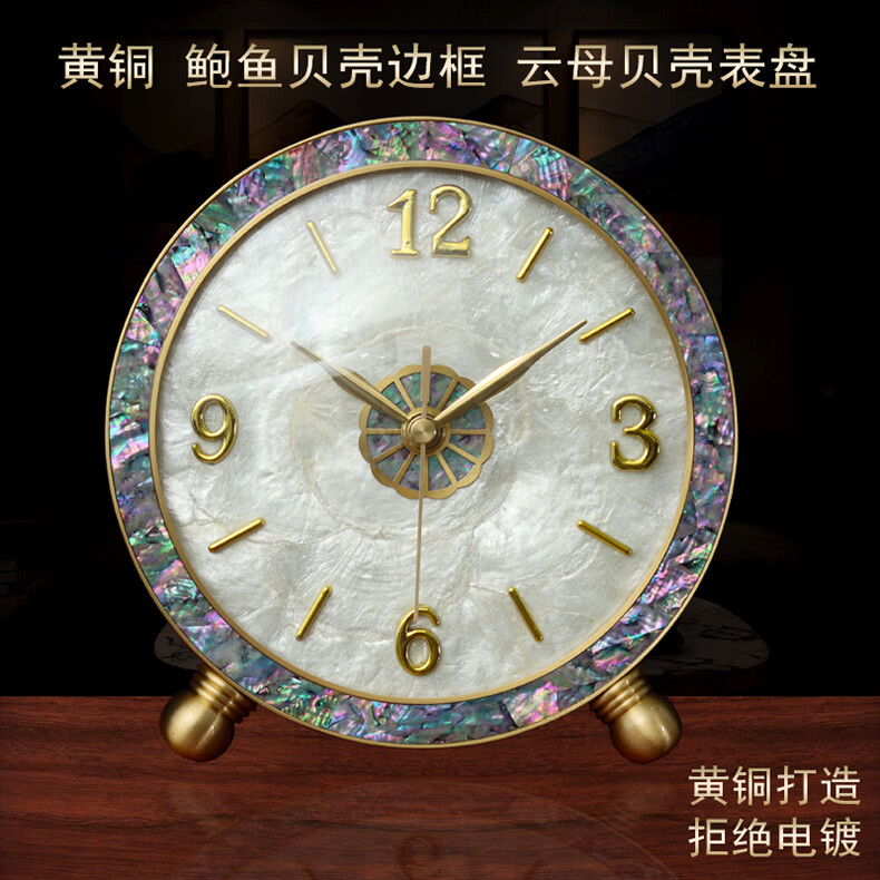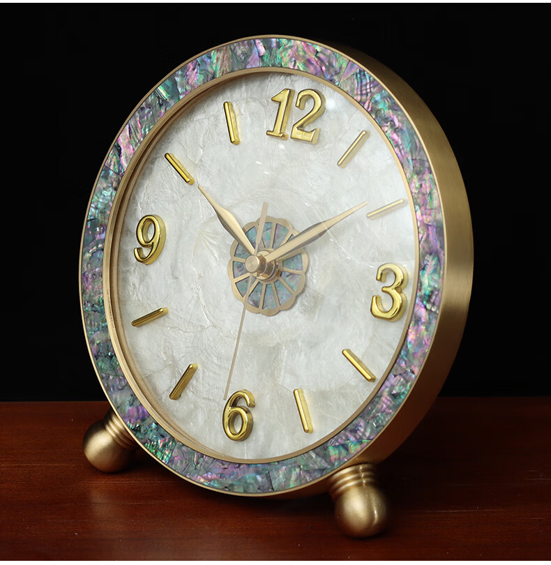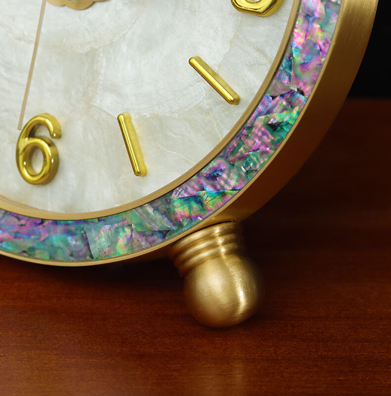 Keqin Brass Table Clock Modern Simple Sitting Clock Home Shell Desktop Table Clock Decorative Desk Clock Brass-Mica Shell Dial Manual Adjustment Movement Guaranteed for 10 Years, Adjustment Once Every 2 Years