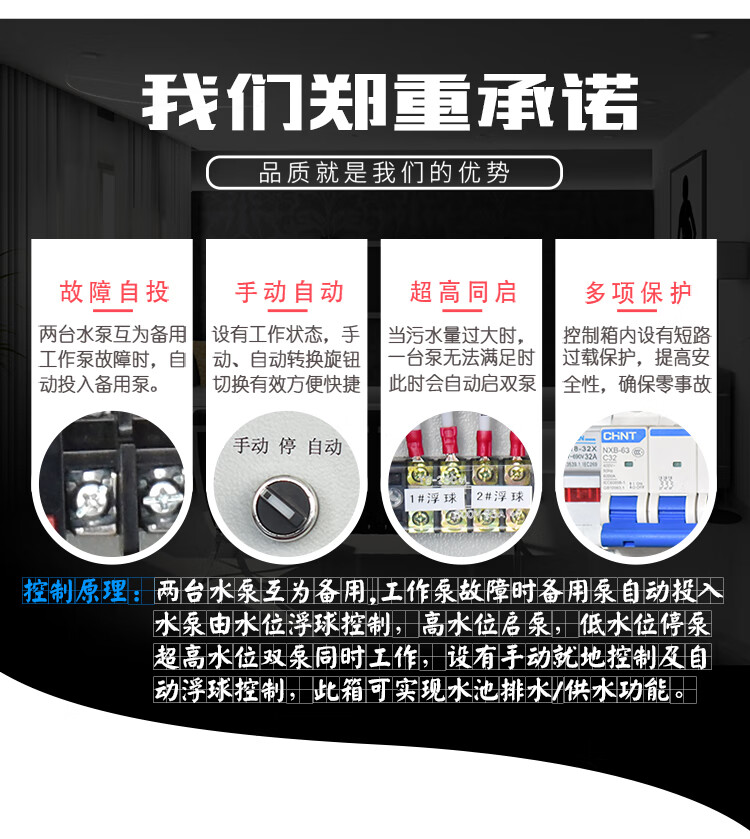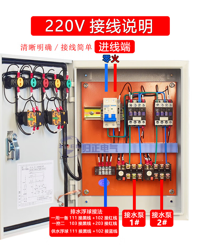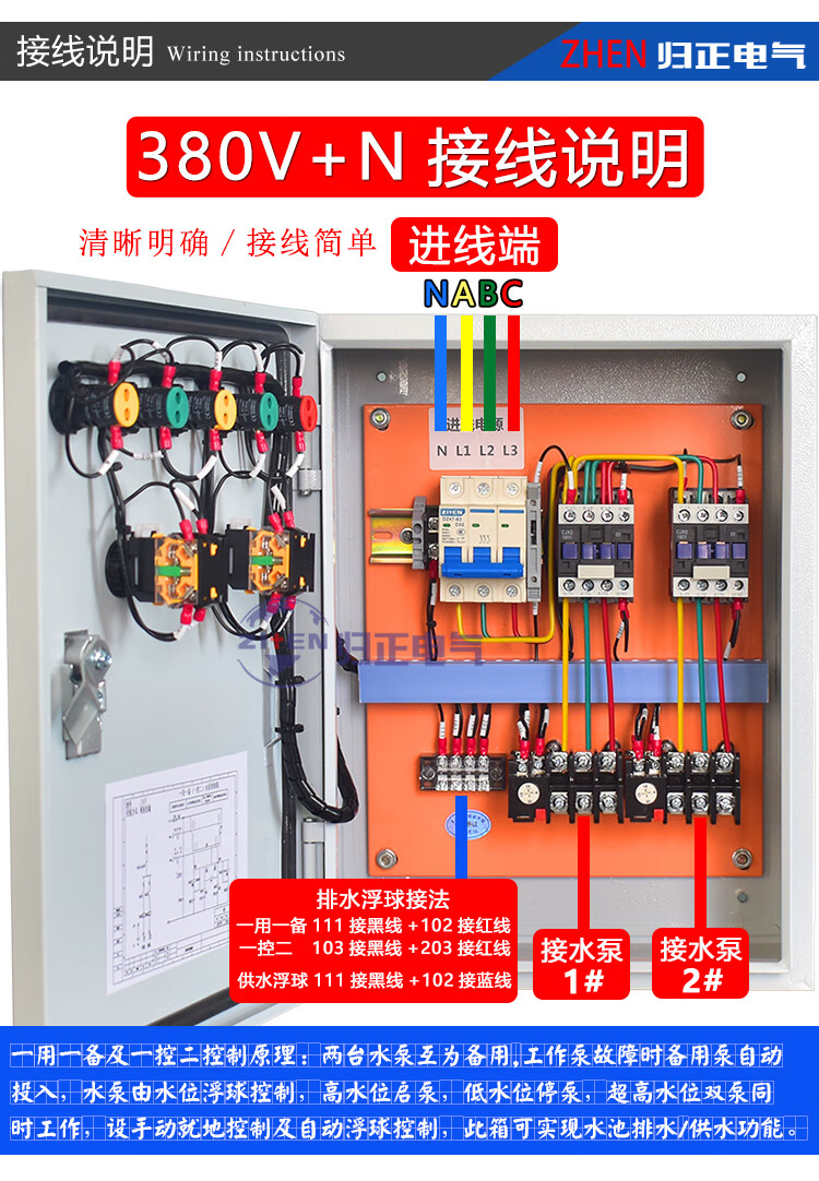 One use and one backup water pump control box float ball 380V control cabinet sewage pump control box motor control electric box one control one 11KW CHINT