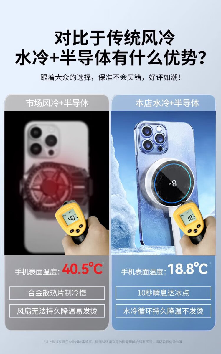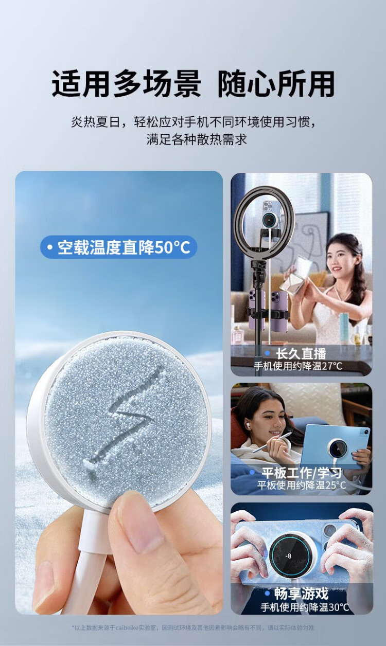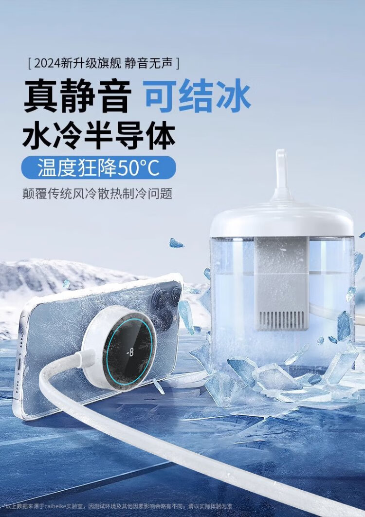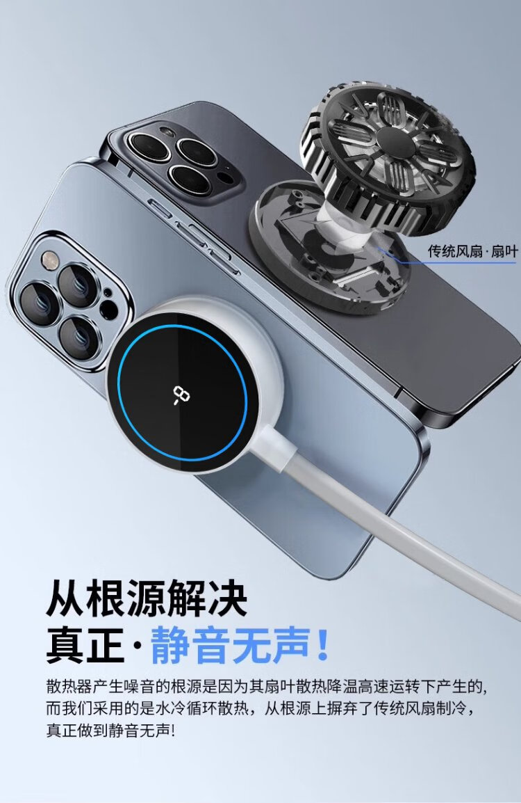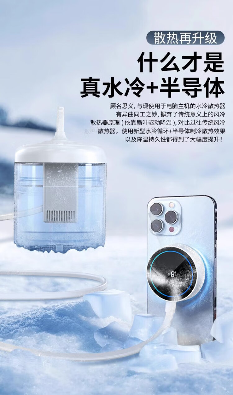 CAIBEIKE water-cooled mobile phone radiator liquid cooling magnetic cooling artifact semiconductor live broadcast special ultra-quiet back clip fan only water-cooled radiator water-cooled model S2-white