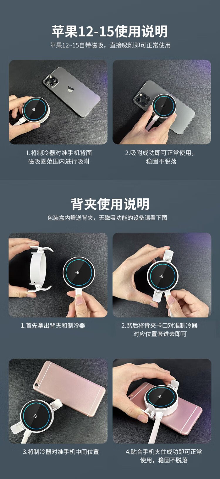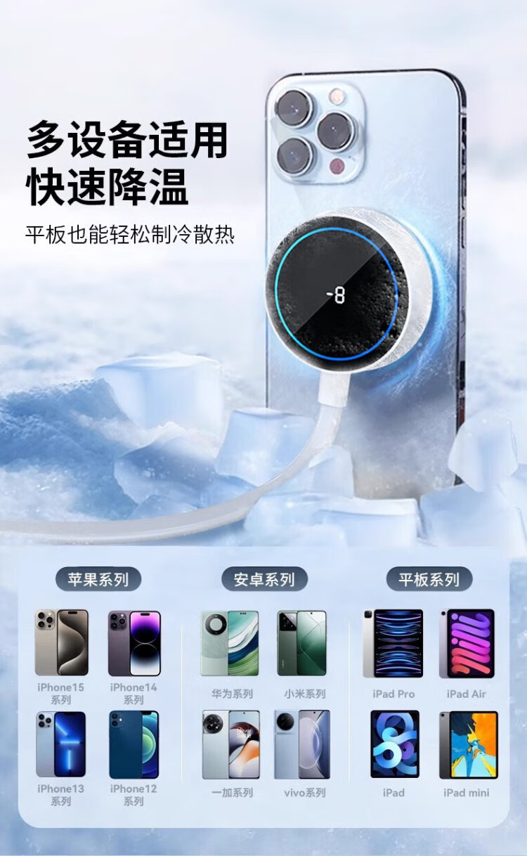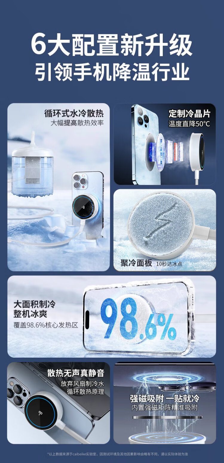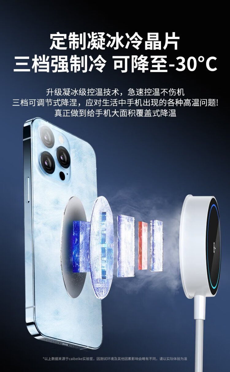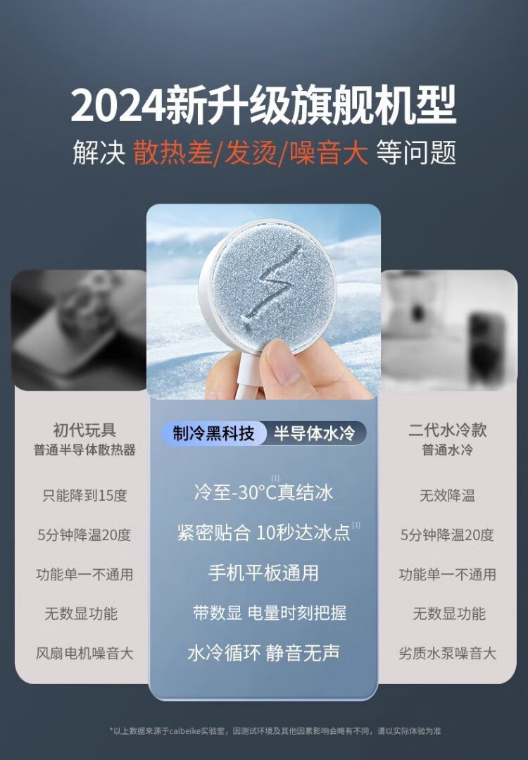CAIBEIKE water-cooled mobile phone radiator liquid cooling magnetic cooling artifact semiconductor live broadcast special ultra-quiet back clip fan only water-cooled radiator water-cooled model S2-white