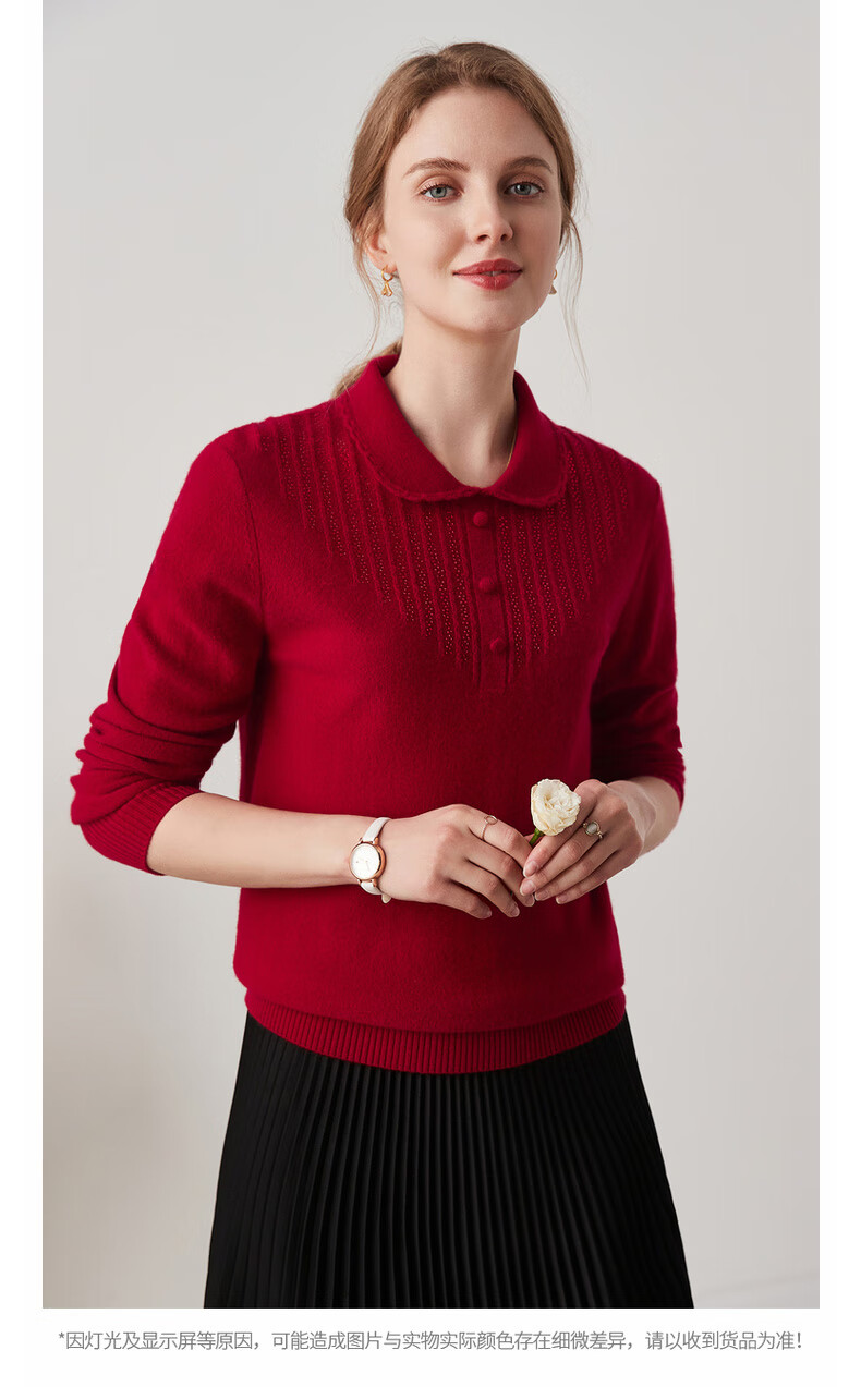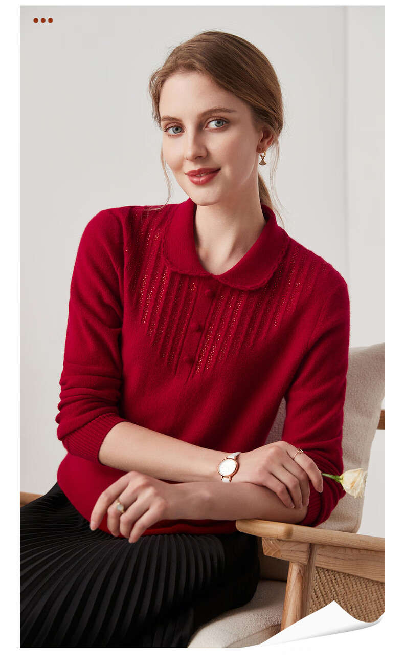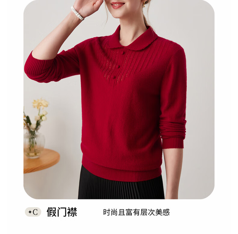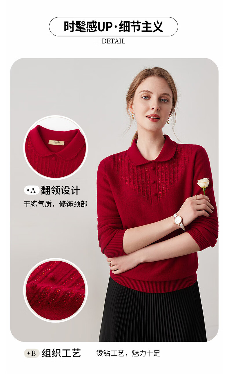 Zhaojun 2024 Autumn and Winter Red Fashion Casual Wool Sweater Women's Lapel Long Sleeve Warm Knitted Sweater Pomegranate Red L