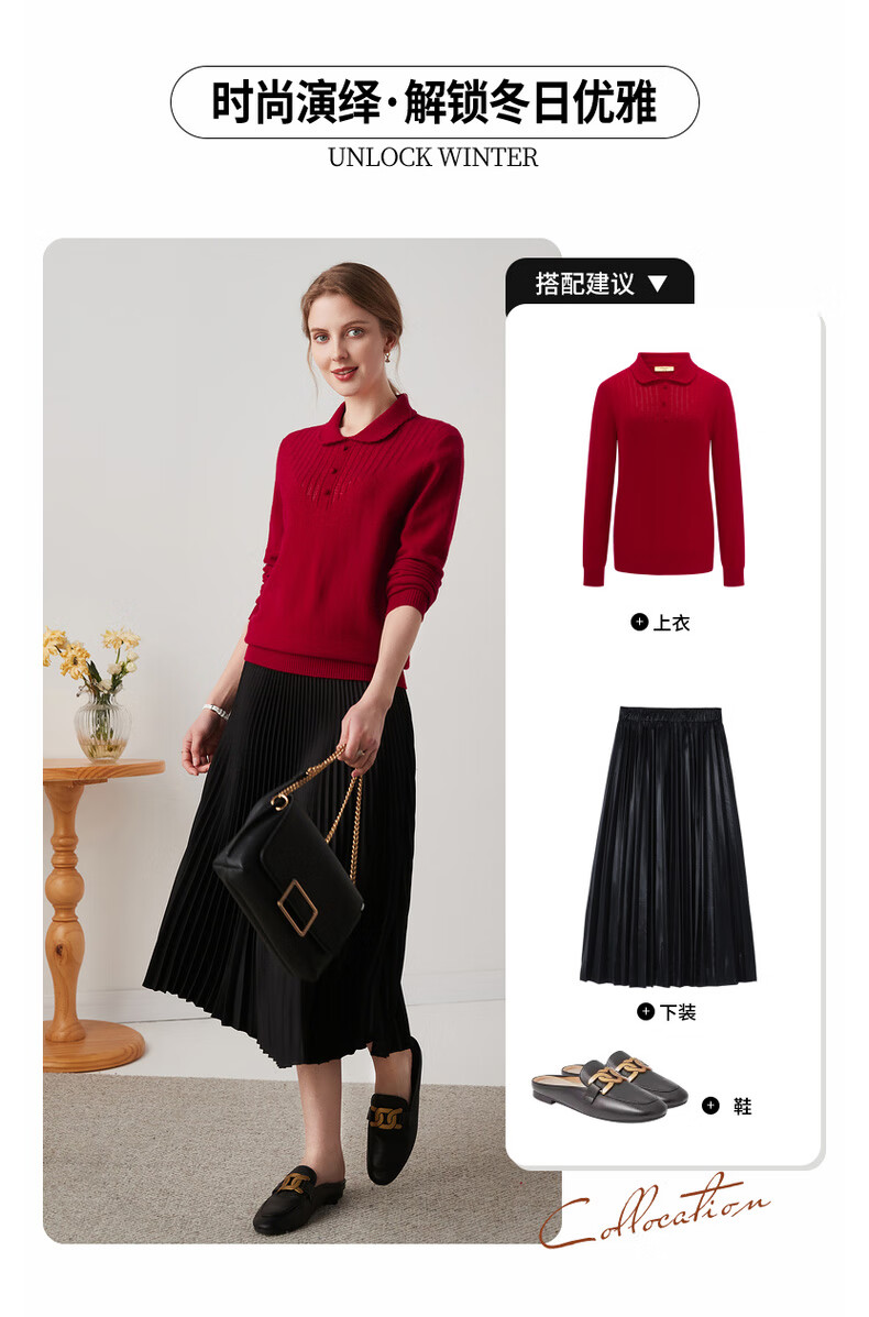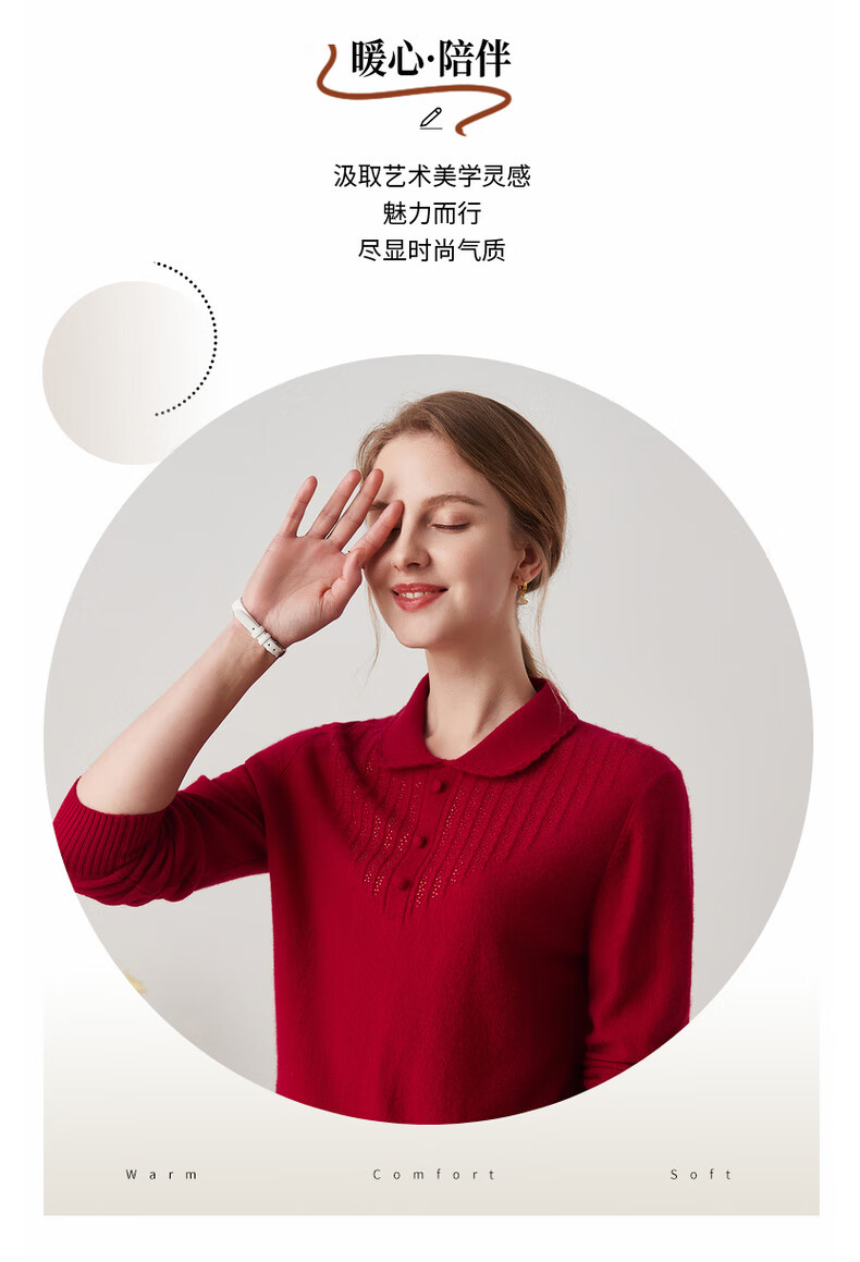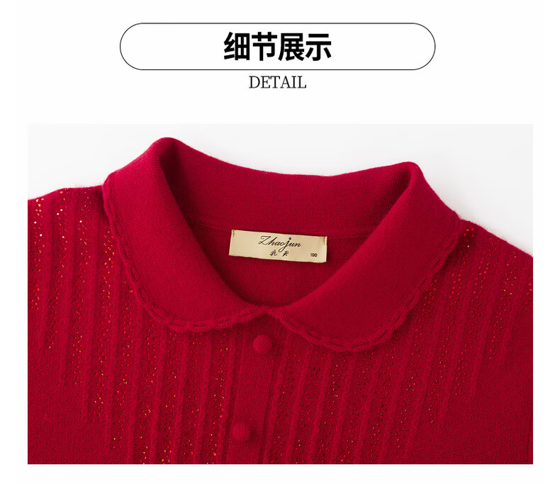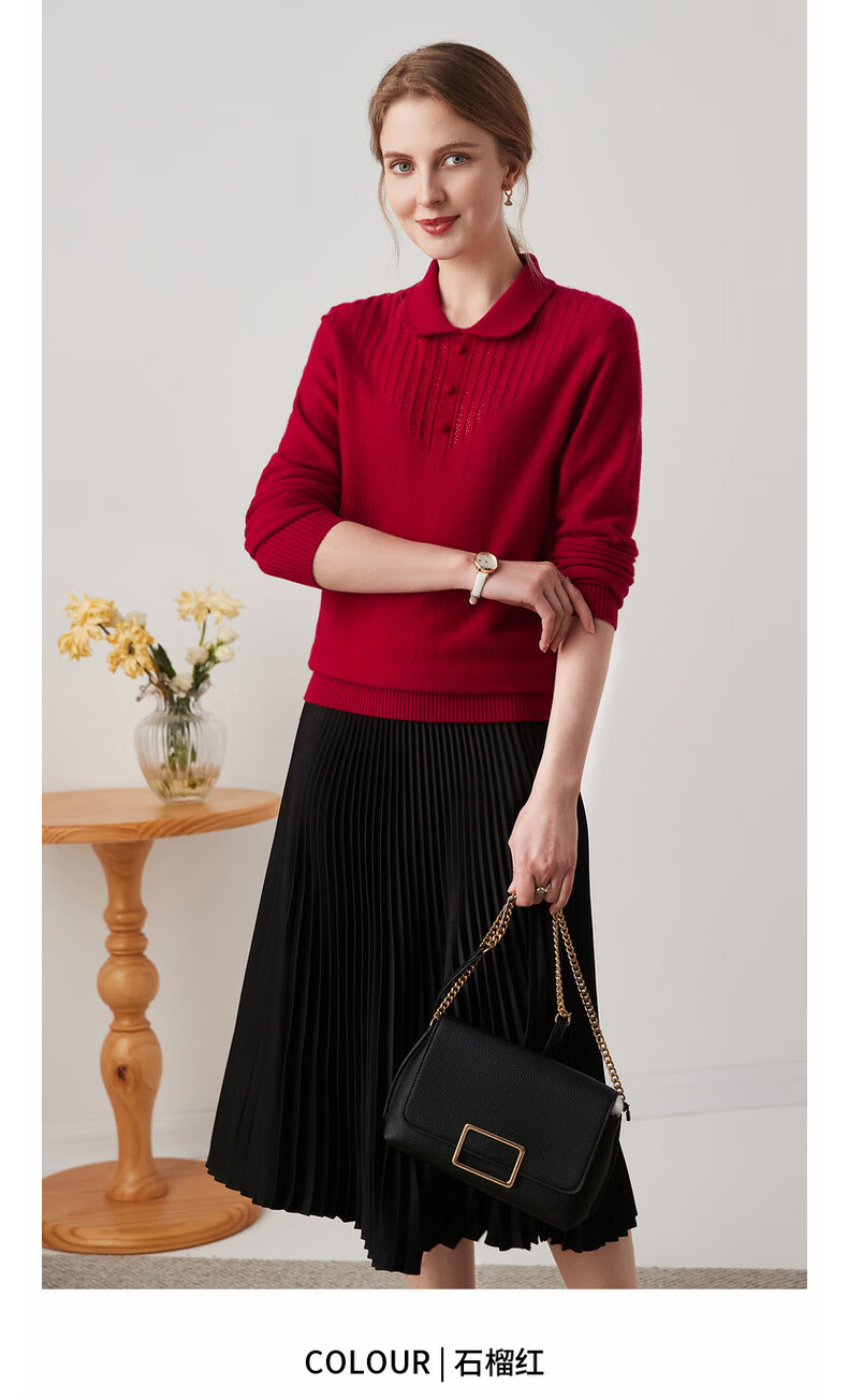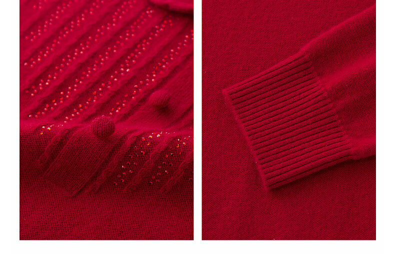 Zhaojun 2024 Autumn and Winter Red Fashion Casual Wool Sweater Women's Lapel Long Sleeve Warm Knitted Sweater Pomegranate Red L