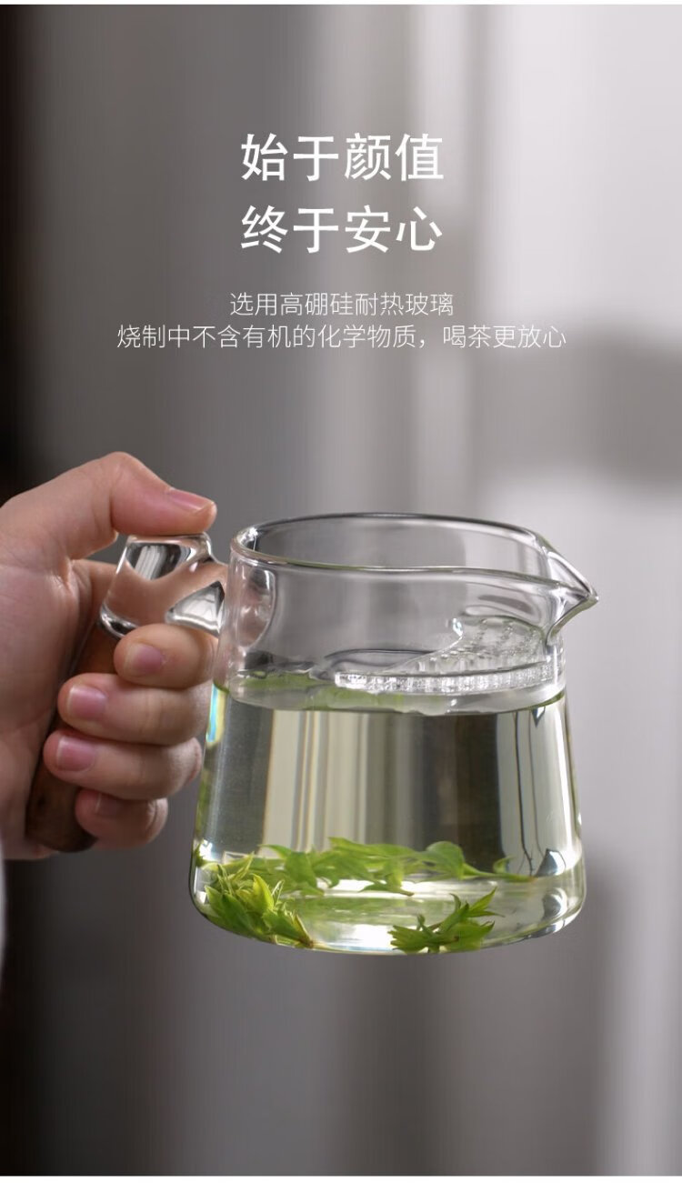 Gaoming Crescent Tea Filter Fair Cup High Borosilicate Transparent Glass Male Cup Tea Divider High Temperature Resistant Tea Cup Tea Set Accessories Small Shengyue Male Cup 400ml + Lid
