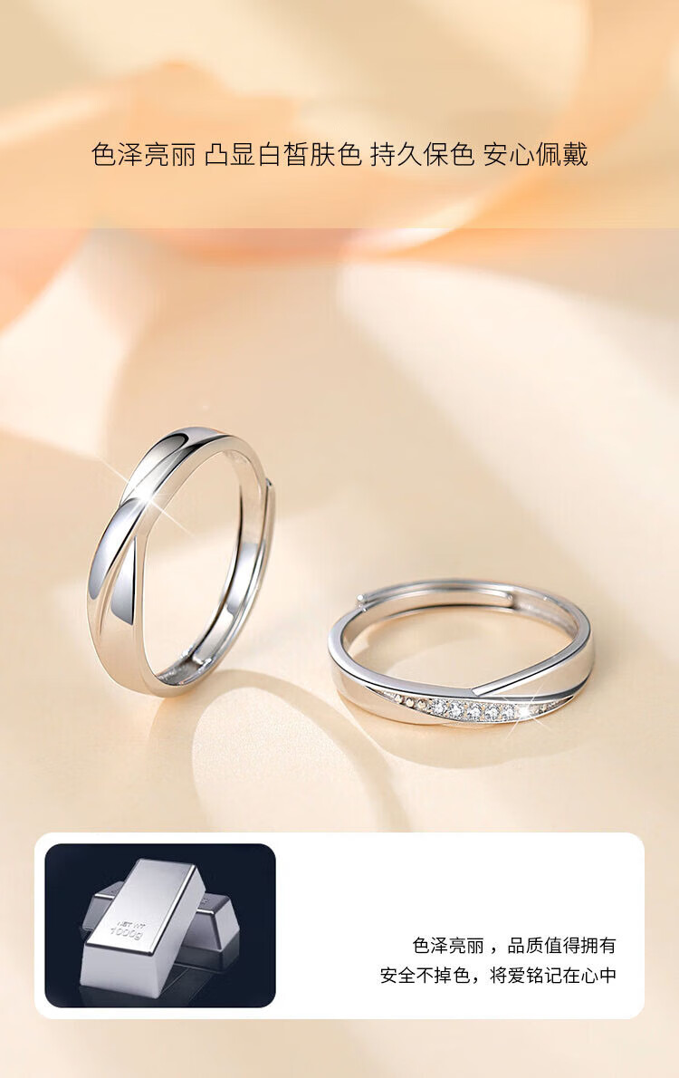 MZMZ platinum couple ring pt950 fashionable platinum engagement diamond ring Valentine's Day birthday gift for girlfriend, light luxury model - endless love ring (live mouth)