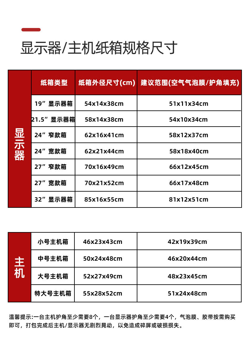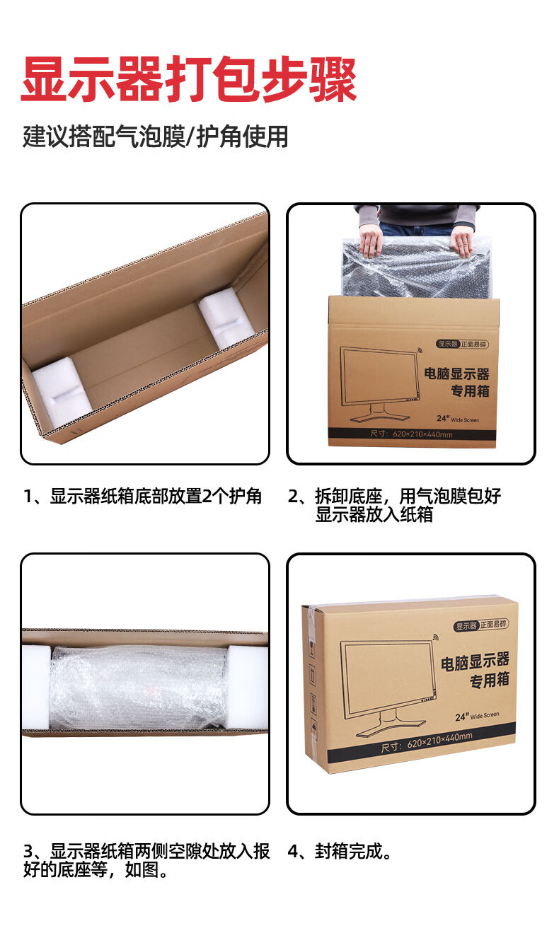 CLCEY 24-inch 27-inch computer monitor screen packaging carton with foam corner protectors Host packaging box fast Carton + foam corner protectors Can hold 27-inch wide-body monitor 70*21*52cm