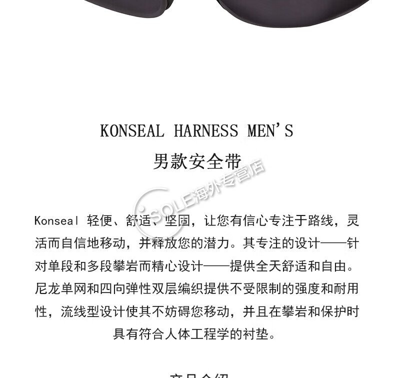 ARC TERYX Men's Outdoor Mountaineering Equipment KONSEAL Lightweight, Sturdy and Wear-Resistant Elastic Rock Climbing and Ice Climbing Multifunctional Safety Belt Black Black XS