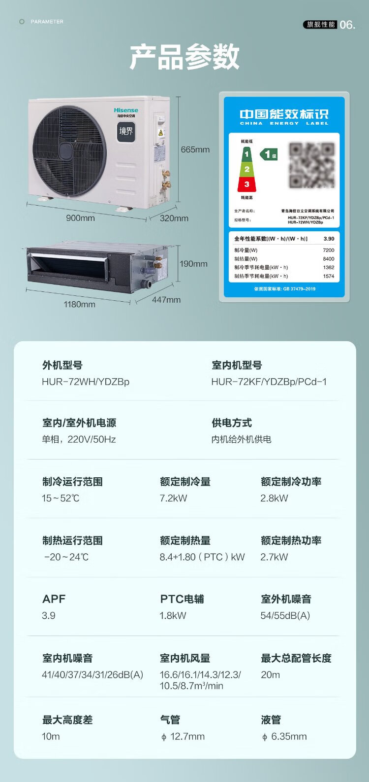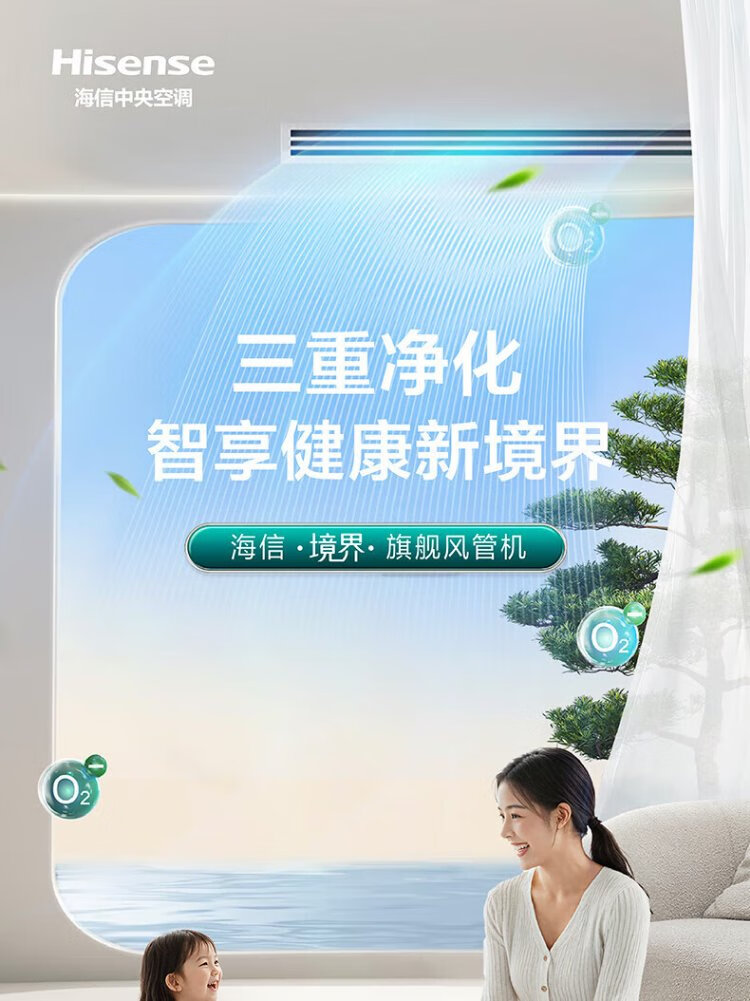 Hisense Hisense central air-conditioning duct machine One-to-one realm flagship version One-price all-inclusive Seiko installation Household embedded 3-layer purification Full DC frequency conversion air conditioner 3 HP HUR-72WH/YDZBp