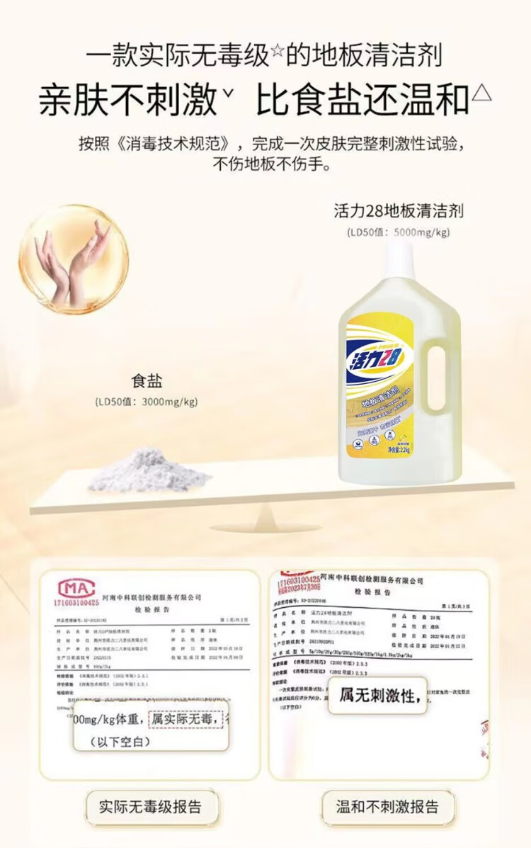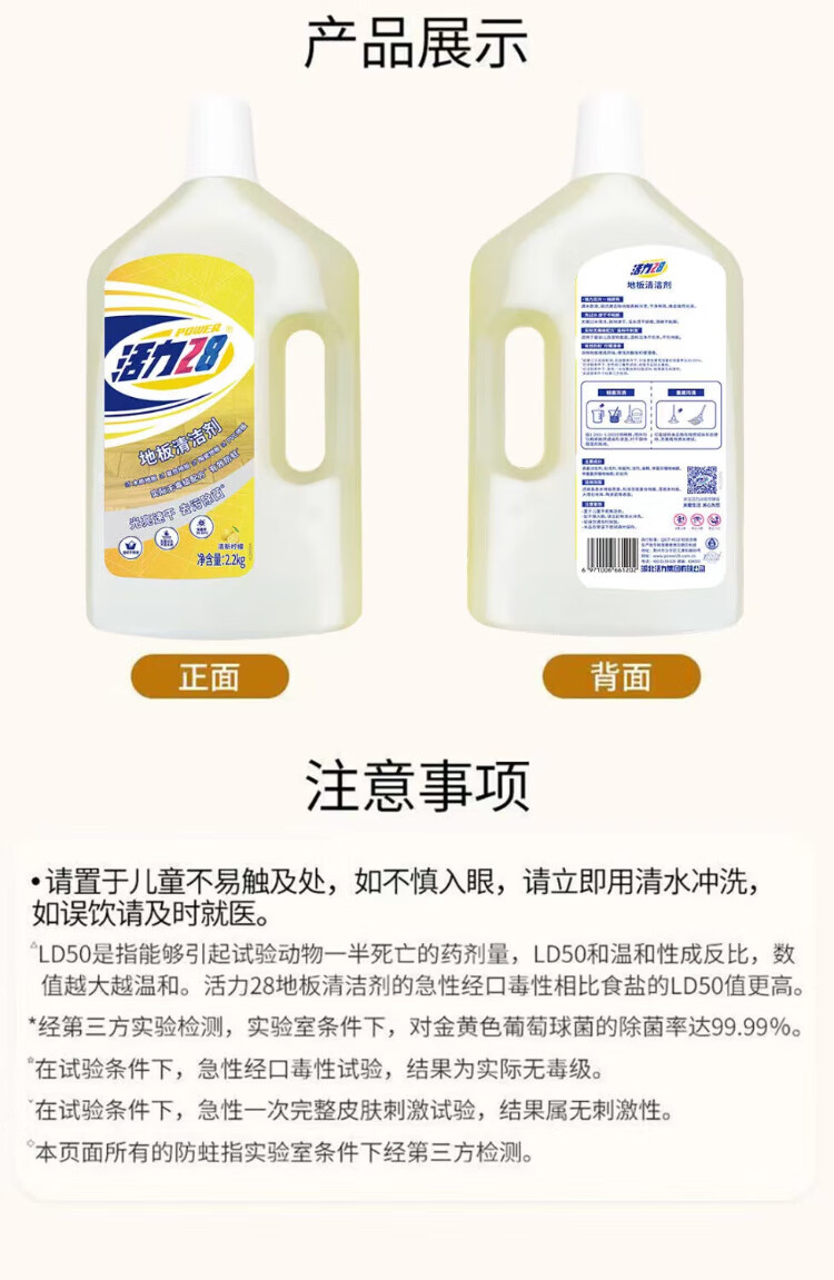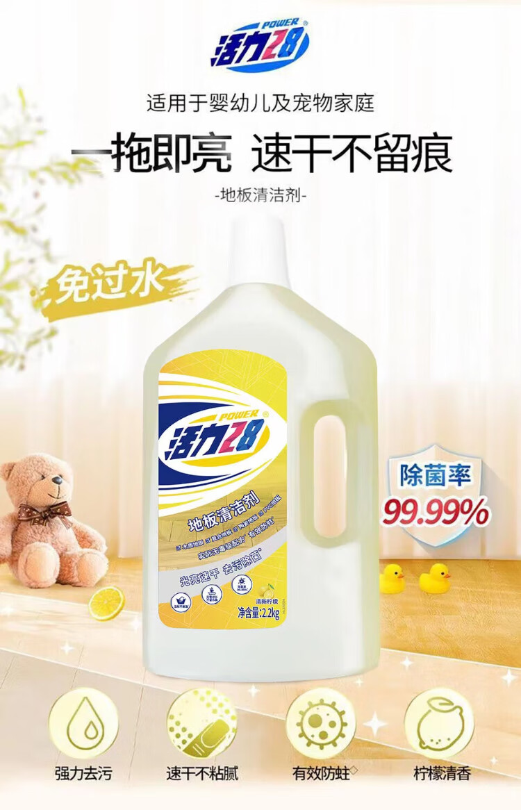 Vitality 28 Floor Cleaner Pet Family Household Quick-drying Lemon Fresh and Mild Large Barrel Anti-moth, Sterilization and Mopping Floor Bright 2kg*2 Bottles - Floor Cleaner Fresh Lemon