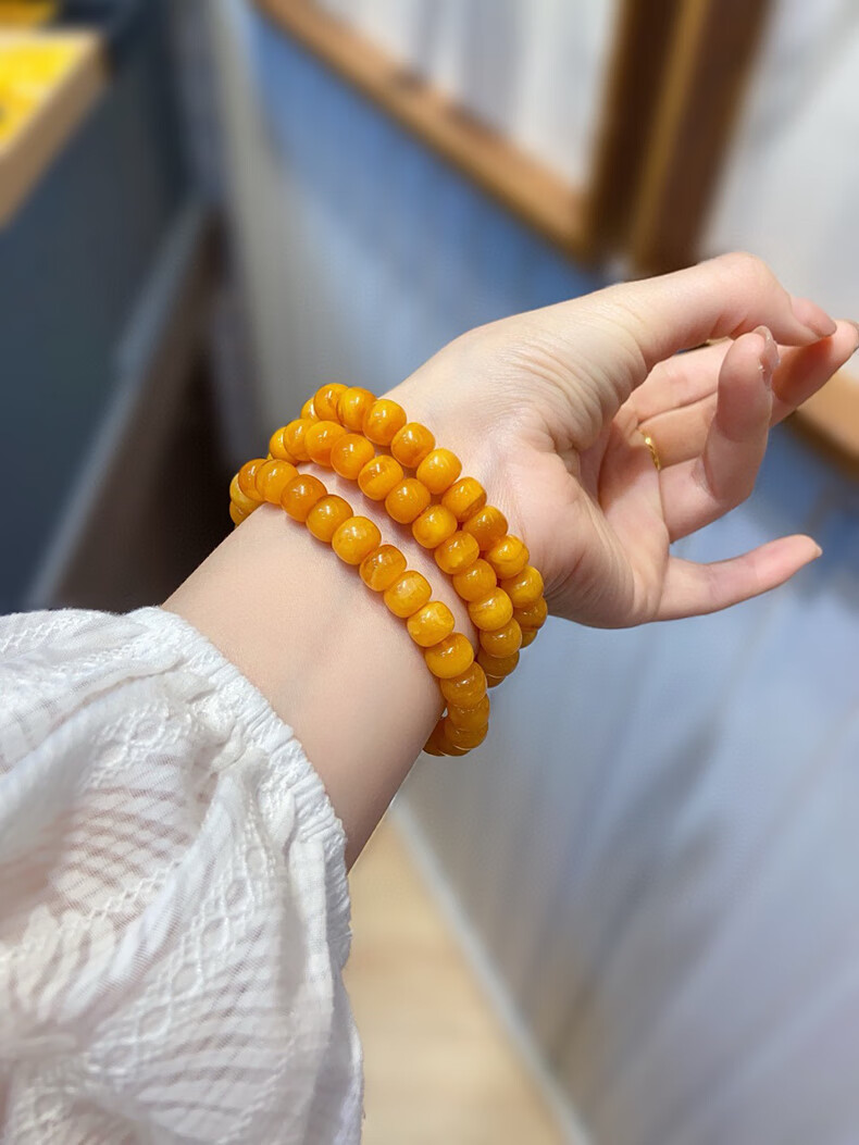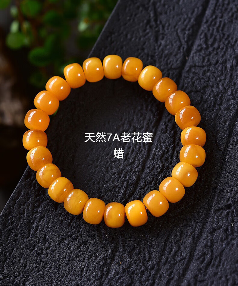 Layun Feiyin Natural Presbyopia Wax Beeswax Bracelet No Baked Color No Premium Old Type Beads Full of Honey Bracelet High-end Jewelry Gift 9.1mm Collection Presbyopia Wax (One Product, One Certificate)