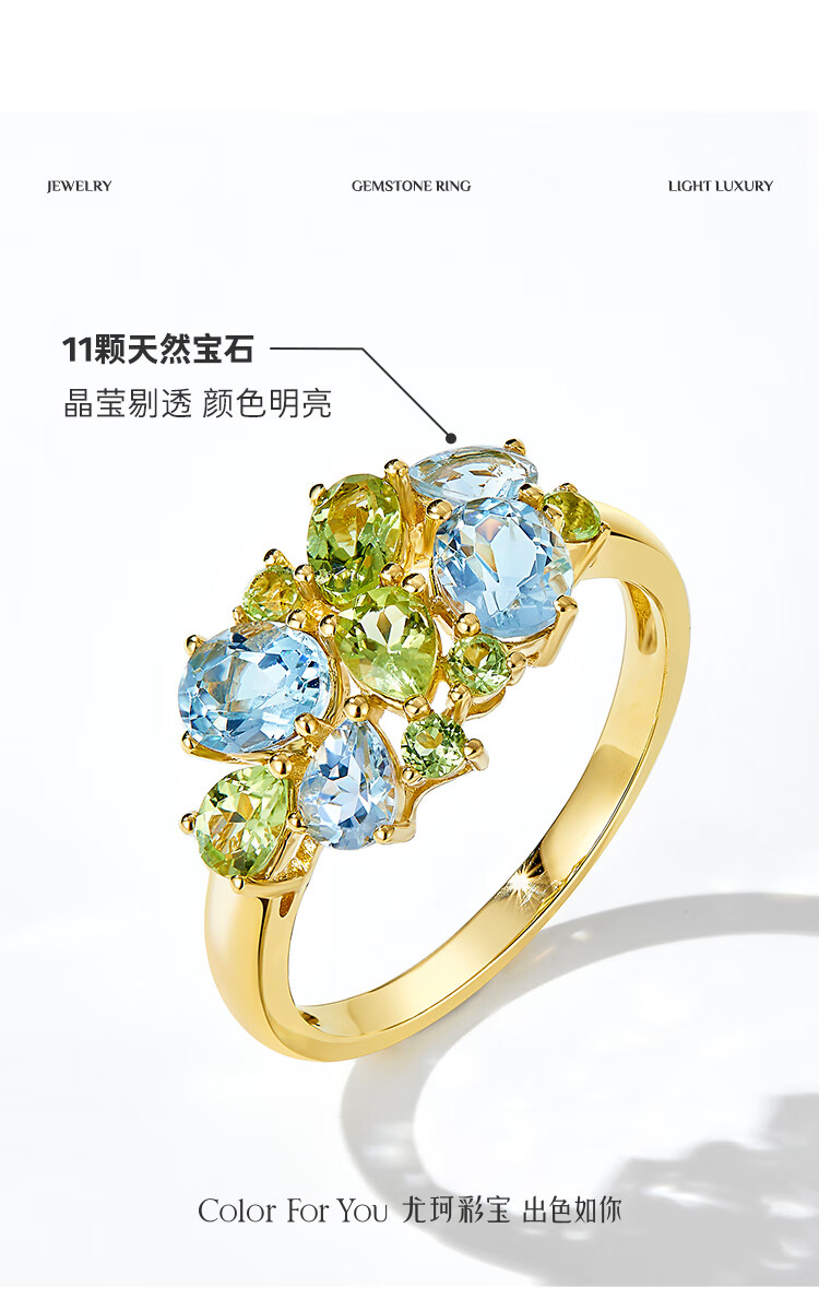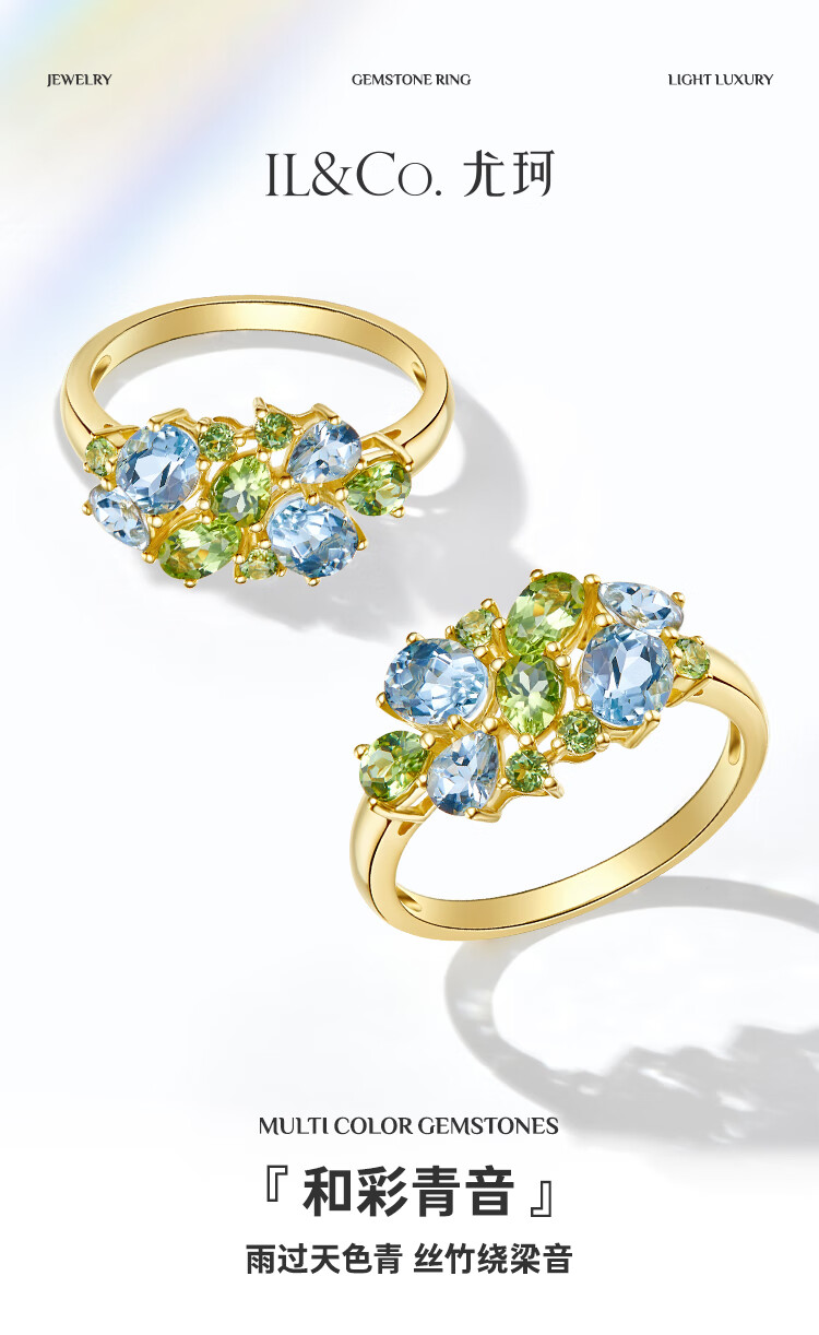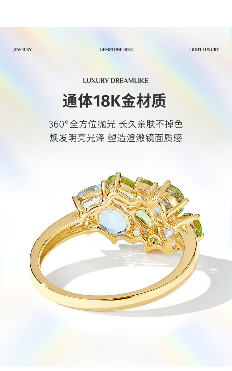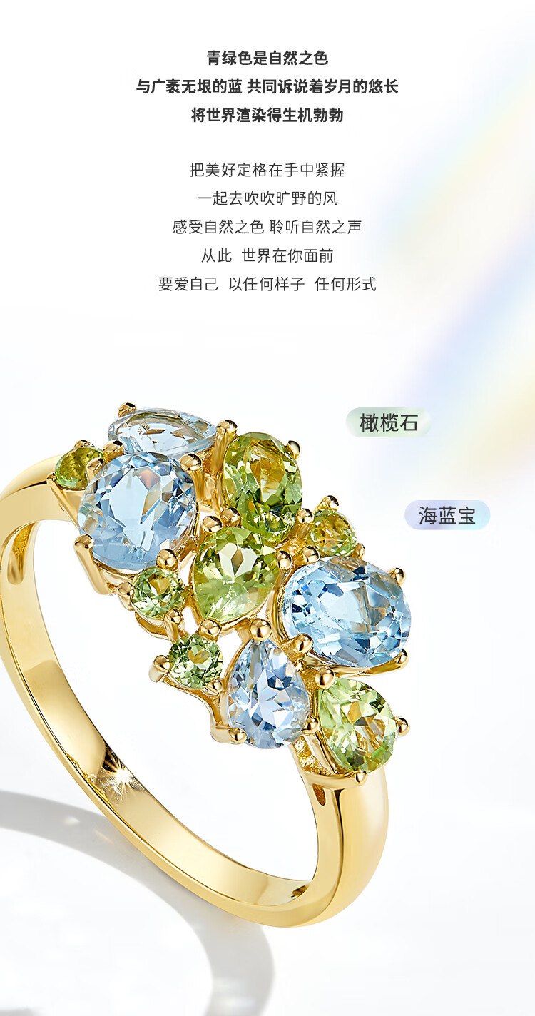 IL&CO Youke Hecai Qingyin 18K gold natural aquamarine ring women's group inlaid colored gemstone women's ring birthday gift peridot + aquamarine total about 1.6 carats No. 13