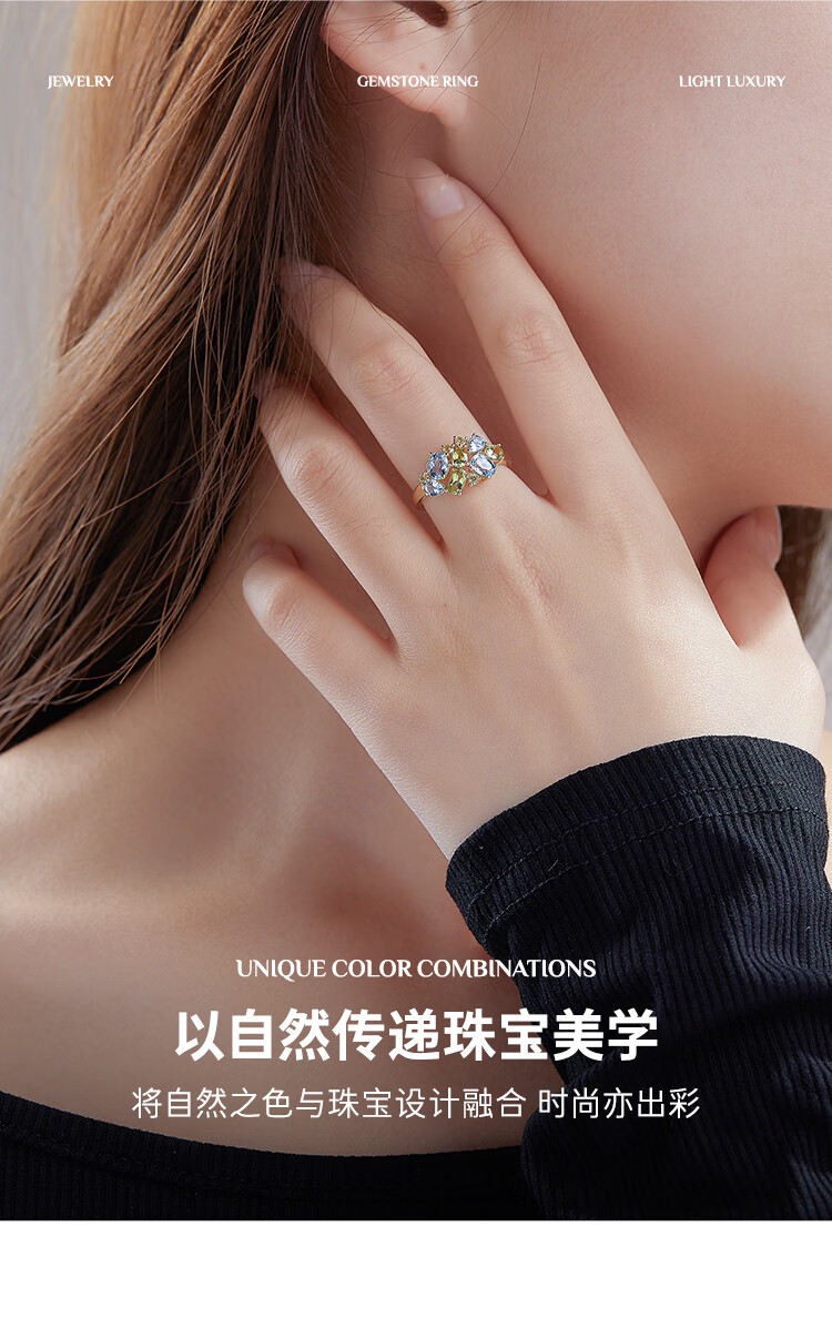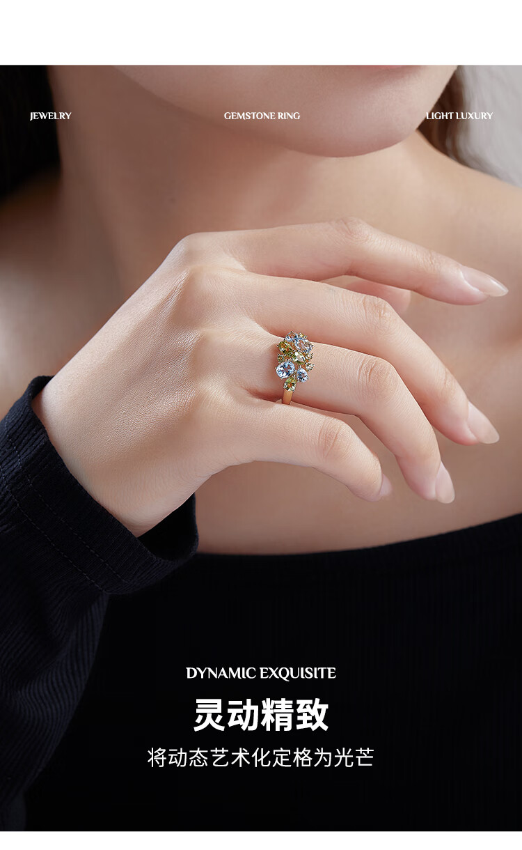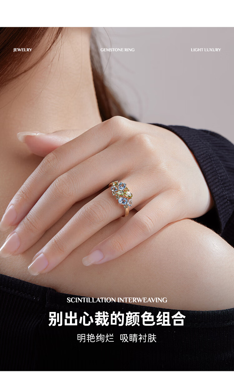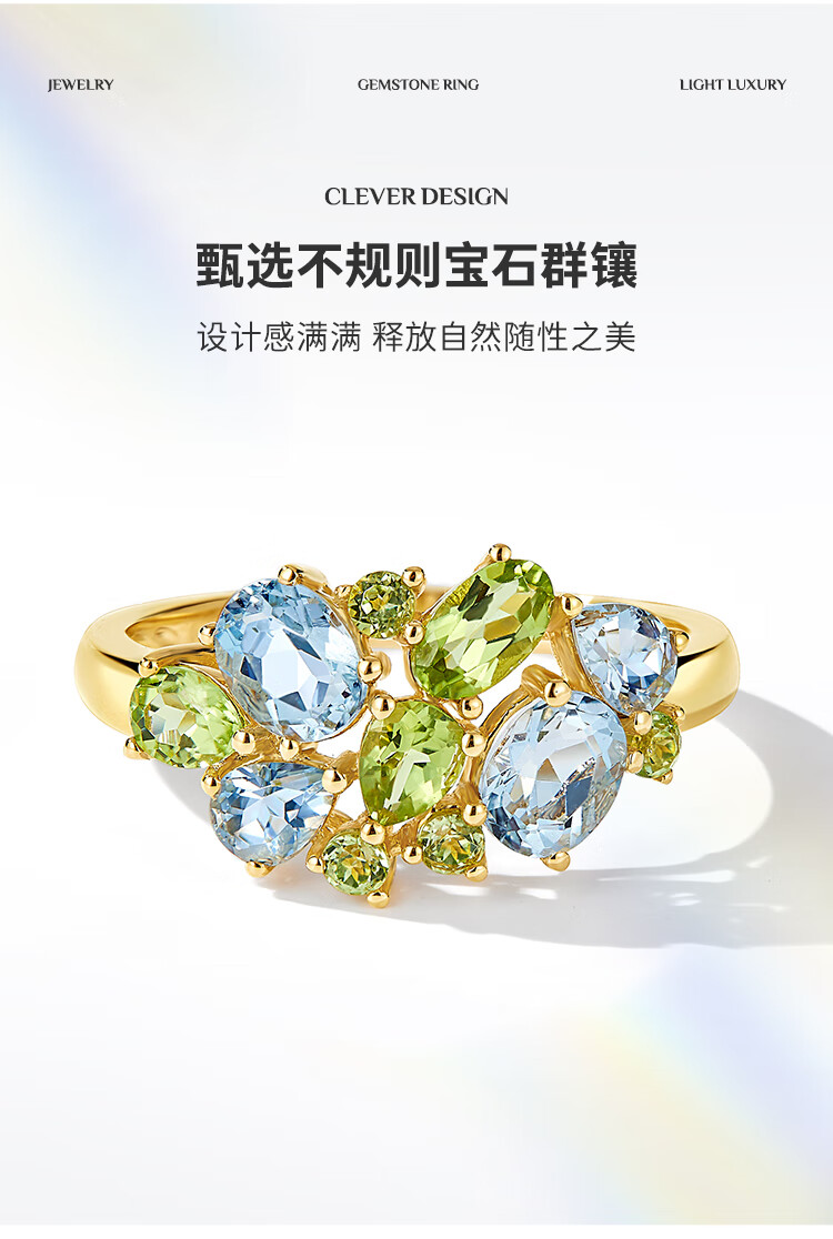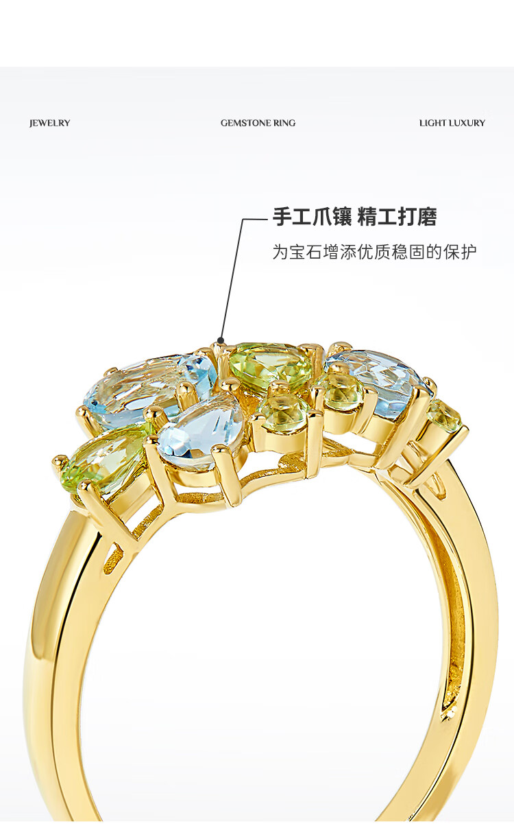 IL&CO Youke Hecai Qingyin 18K gold natural aquamarine ring women's group inlaid colored gemstone women's ring birthday gift peridot + aquamarine total about 1.6 carats No. 13