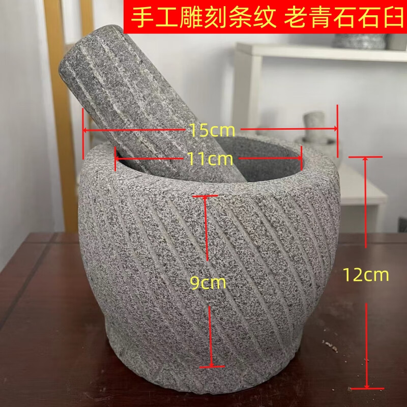 Bluestone hand-carved stone garlic mortar garlic mortar garlic pounder household stone garlic mortar bluestone hand-carved and polished bluestone garlic mortar 14 cm