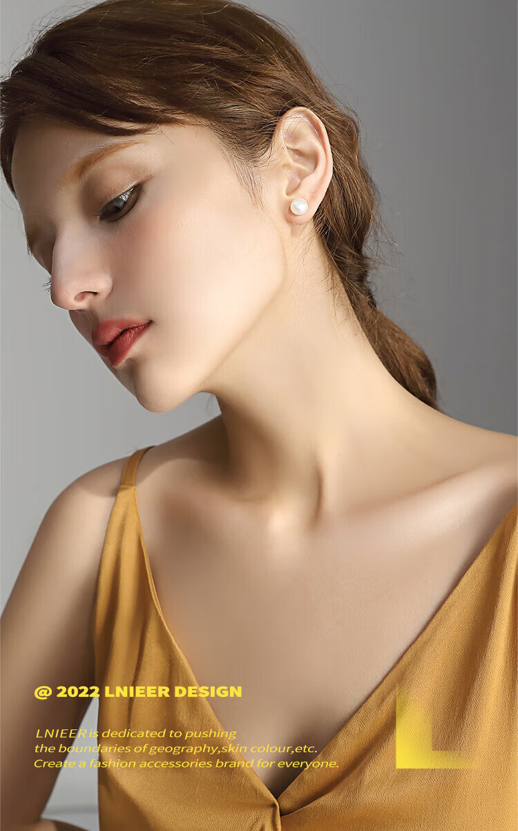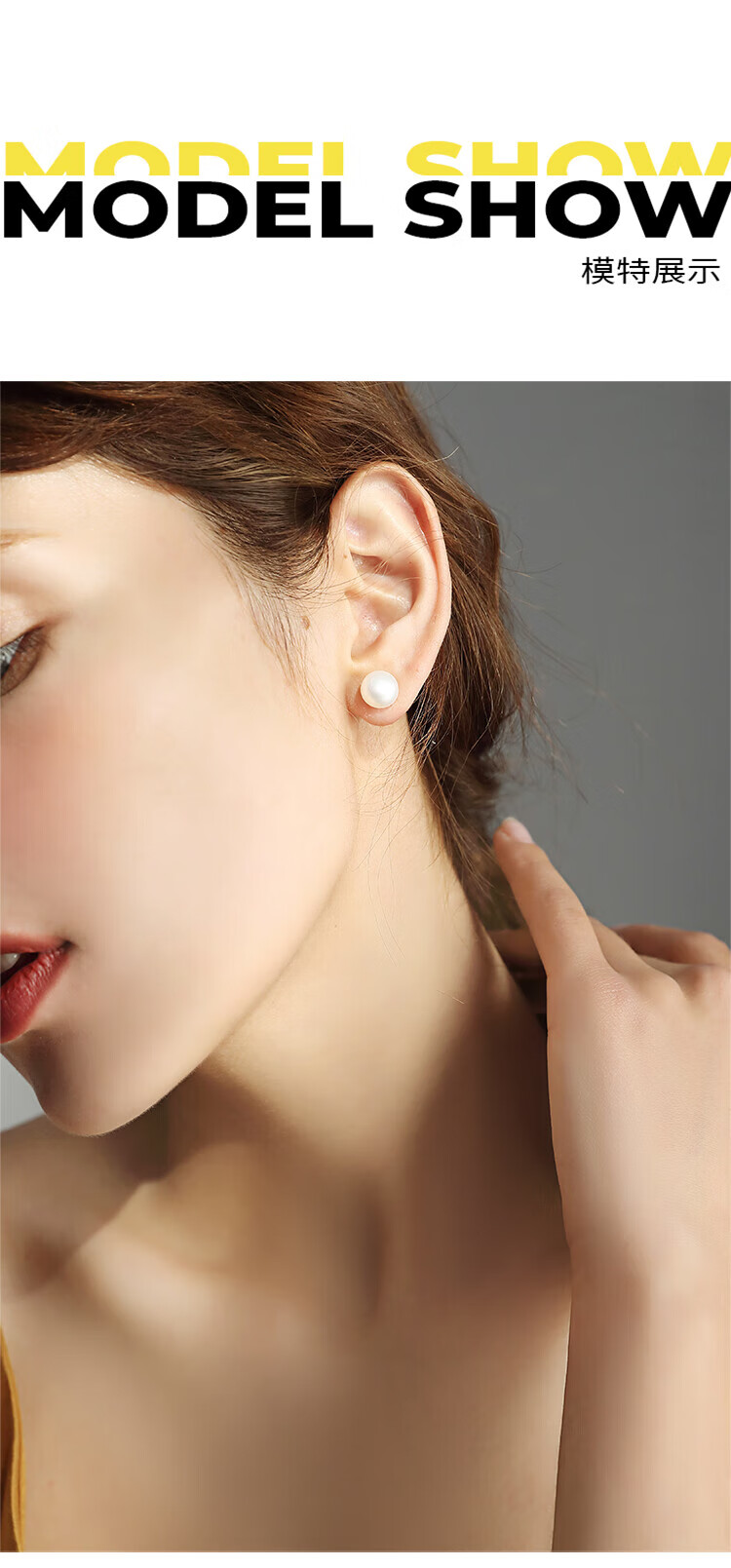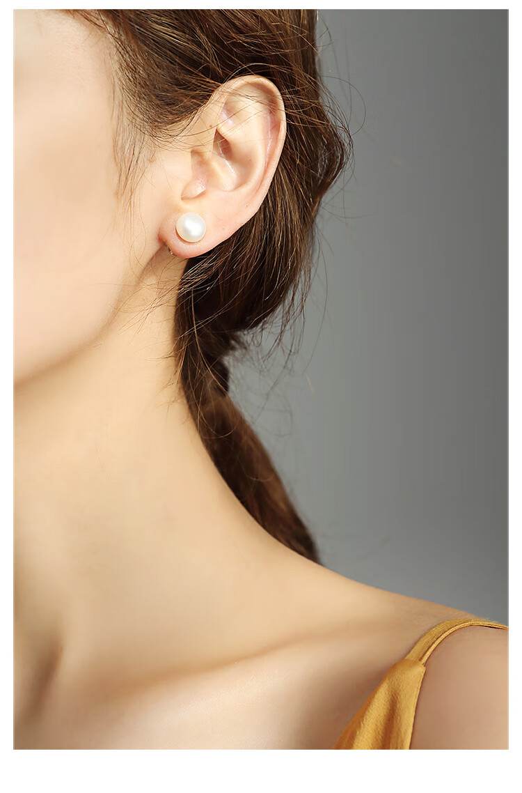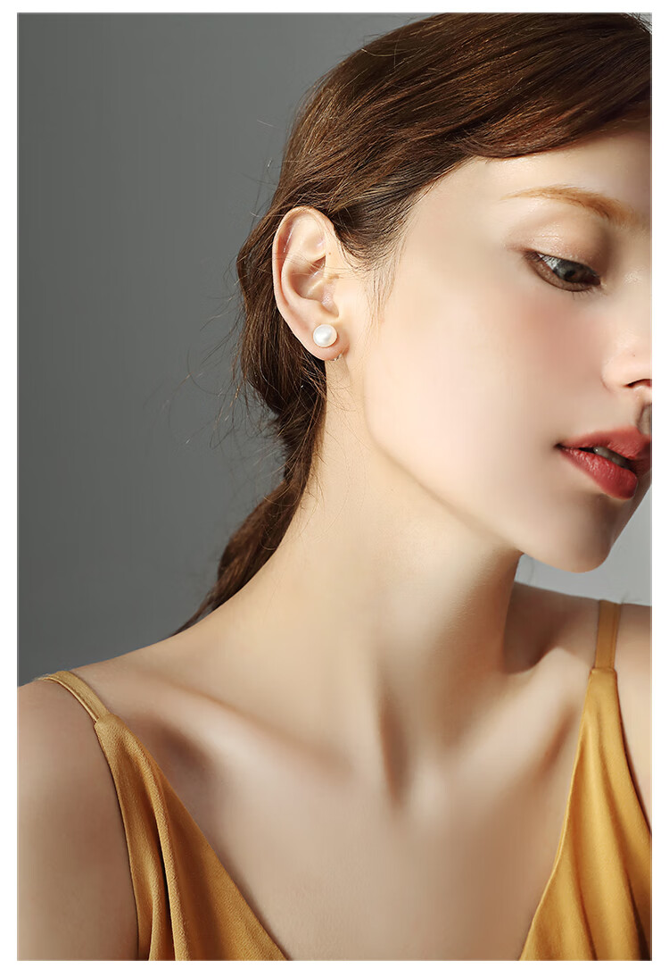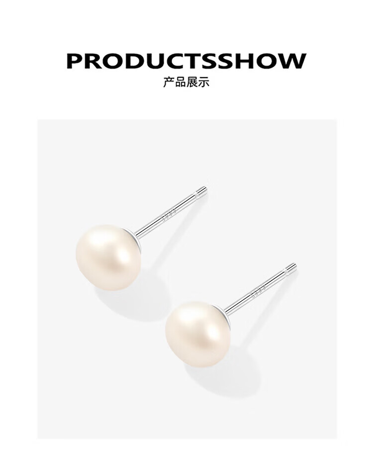 Crystal Snow Freshwater Pearl Earrings Women's Ear Stick Earrings Sleep-Free Earrings Birthday Gift White 4mm