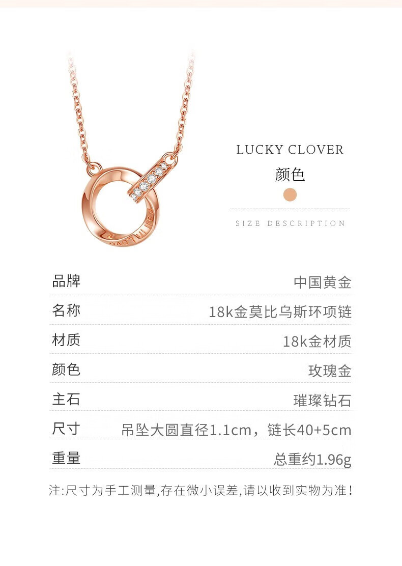CHINA GOLD Möbius diamond necklace for women 18K rose gold chain set birthday gift for girlfriend birthday wife 18K color gold Möbius ring set chain