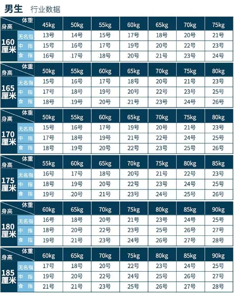 China (cm) 165 / 88-90 170 / 96-98 175 / 108-110 180 / 118-122 185 / 126-130