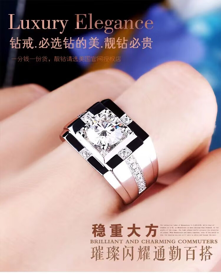 Fat Donglai's same style PT950 platinum moissanite diamond ring new men's D color diamond l ring pt9501/2 carat cross men's ring 2 carat (double certificate + diamond measuring pen) No. 15