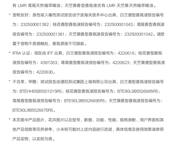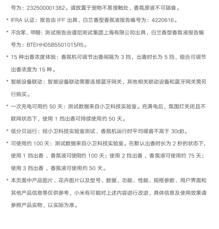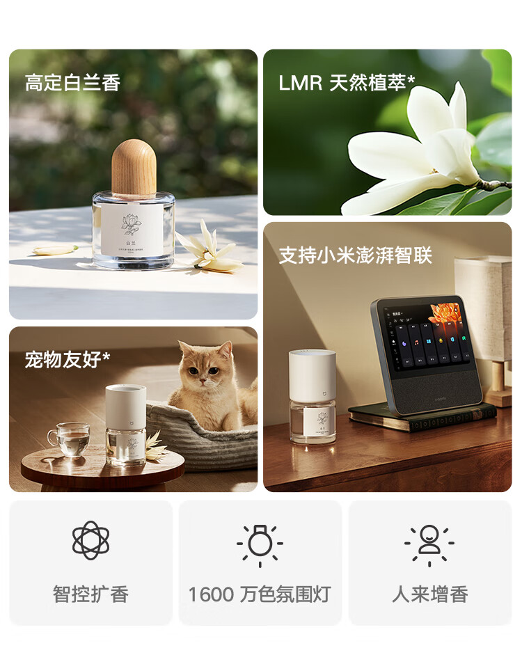 Xiaomi (MI) Mijia Smart Fragrance Machine Set Plant Extract Series Automatic Fragrance Indoor Bathroom Fragrance Fragrance Romantic Colorful Ambience Light Daily Elements Fragrance Liquid 2 Plant Extract Series Bailan