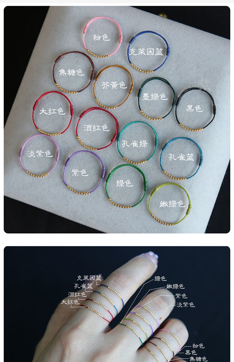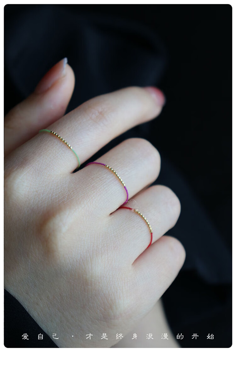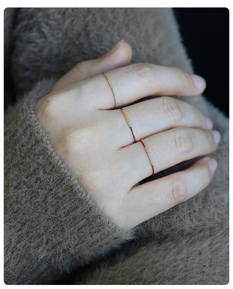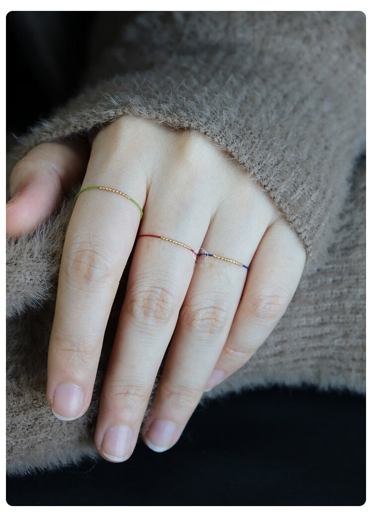 Brocade edge 18k gold sesame beads braided rope thin ring for women adjustable stacking niche design red rope gift for girlfriend and best friend big red ring