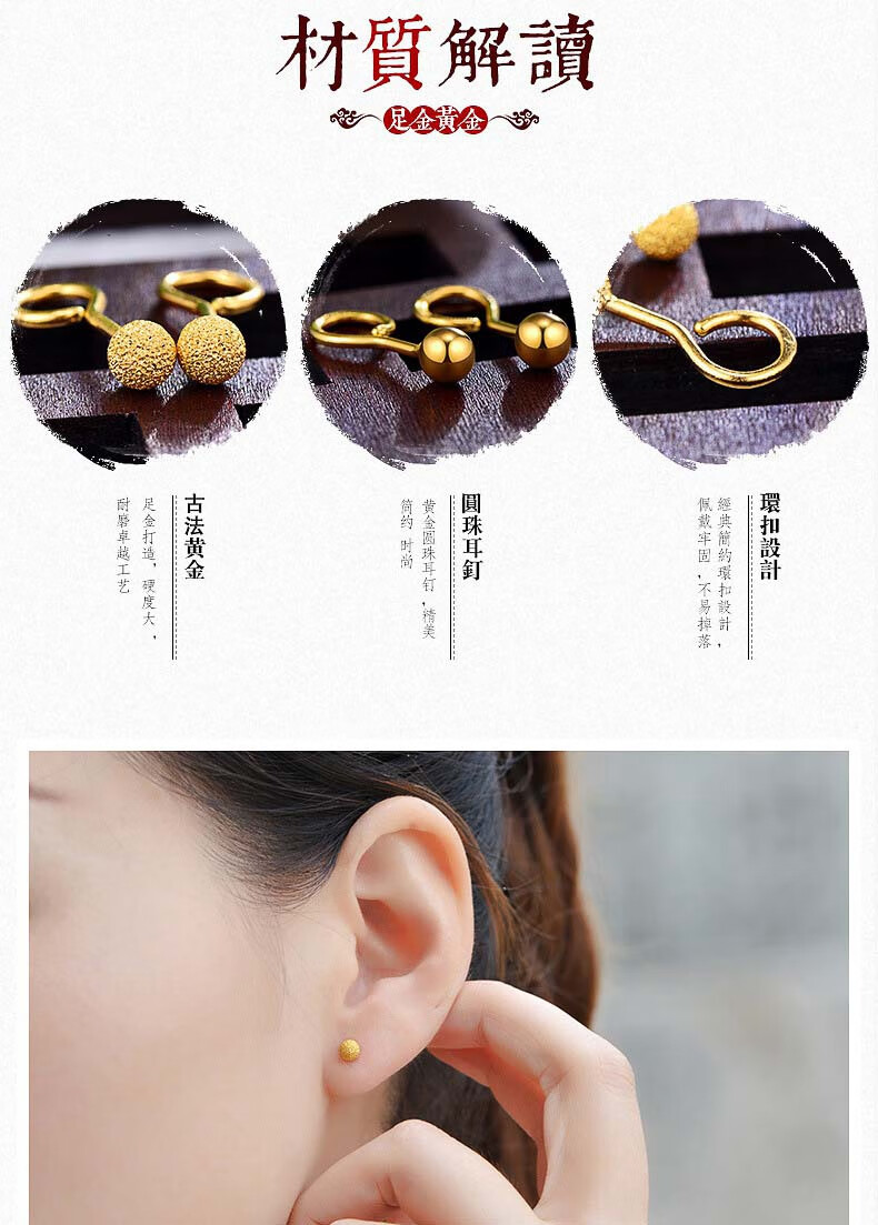 Centenary-old Fengxiang earrings for women, K gold earrings, earrings for raising ears, a pair of double c earrings, a pair of about 1.4 grams, as a Valentine's Day gift for girlfriend