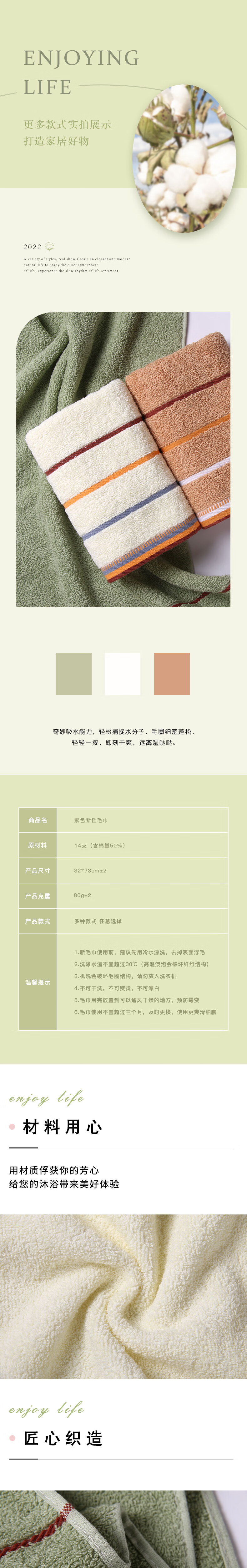 Xinjiang cotton is enlarged and thickened, face wash towel is soft and absorbent, household wipes face, feet, bathes, stripes are random, new invitation exclusive 1 piece 73-33cm