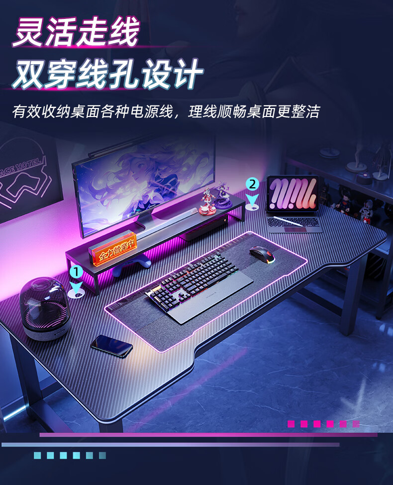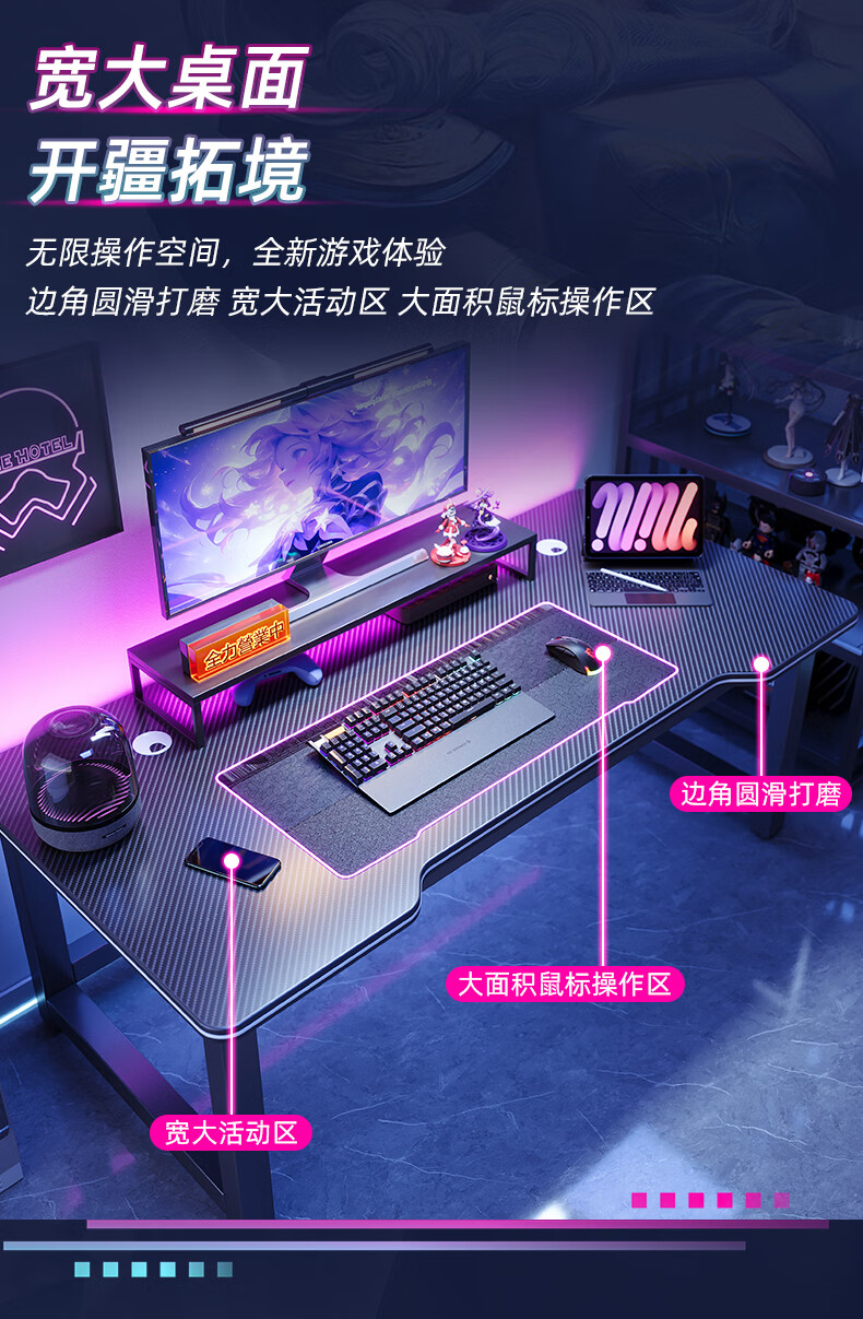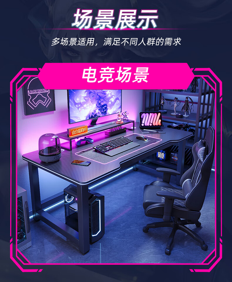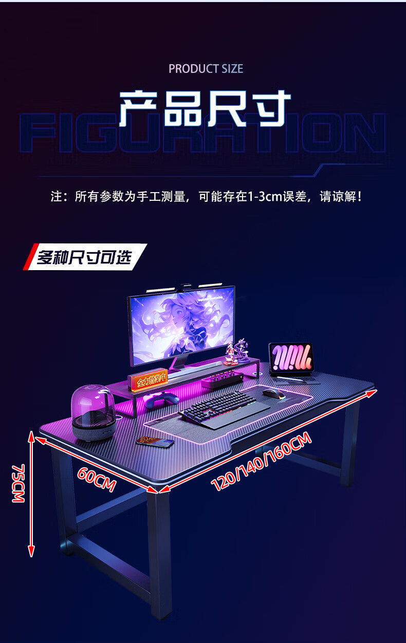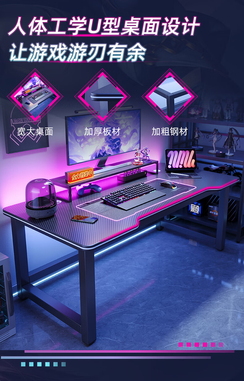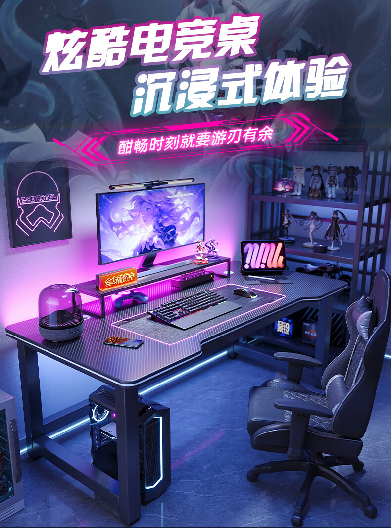 Selected computer desk desktop home e-sports game table double office desk desk simple study desk writing desk thickened carbon fiber texture-120CM recommended by the store manager