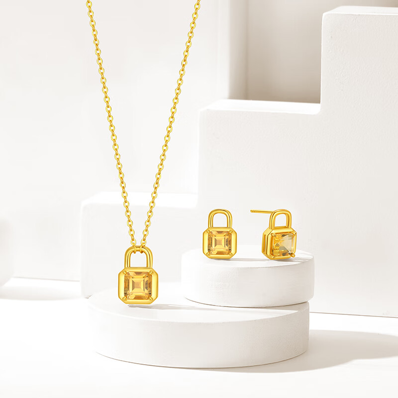 Chao Acer Zhijian Lock Citrine 18K Gold Necklace Women's Color Gold Clavicle Chain as a Birthday Gift for Girlfriend C Chain length is about 45cm