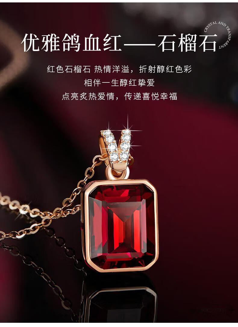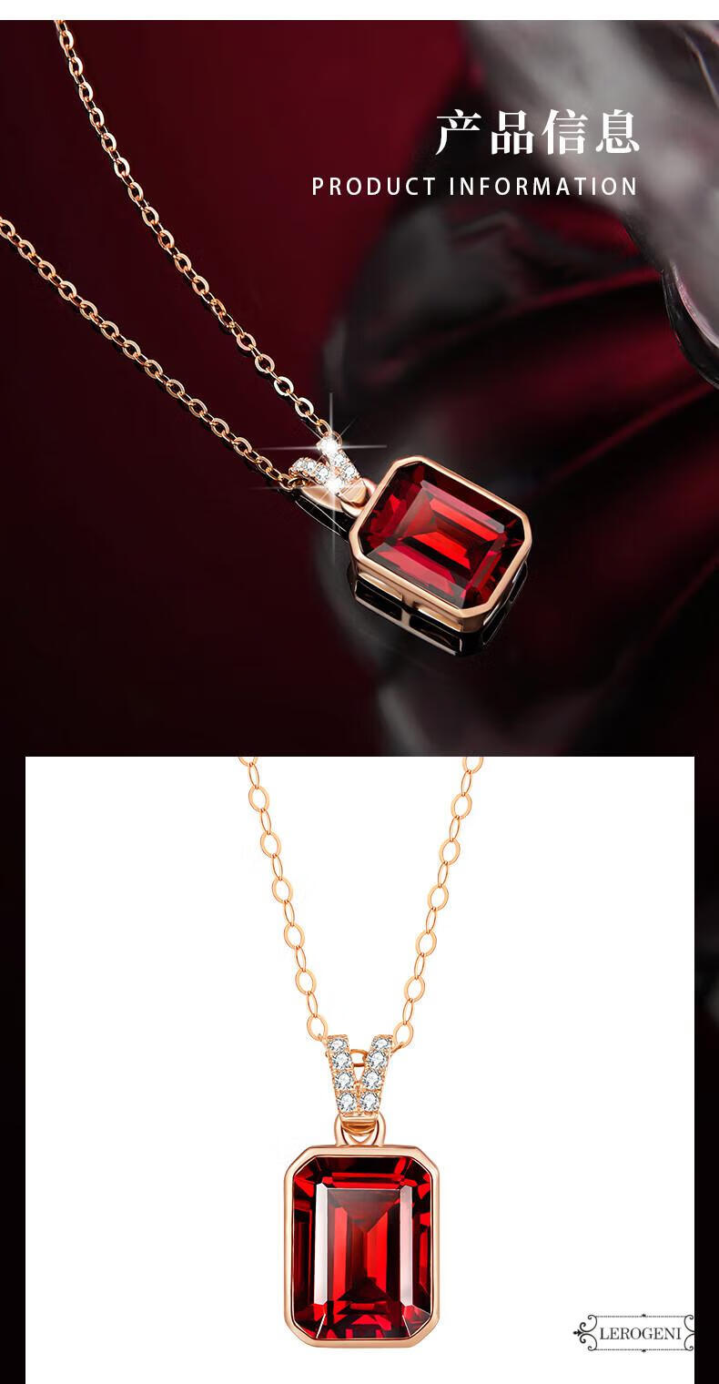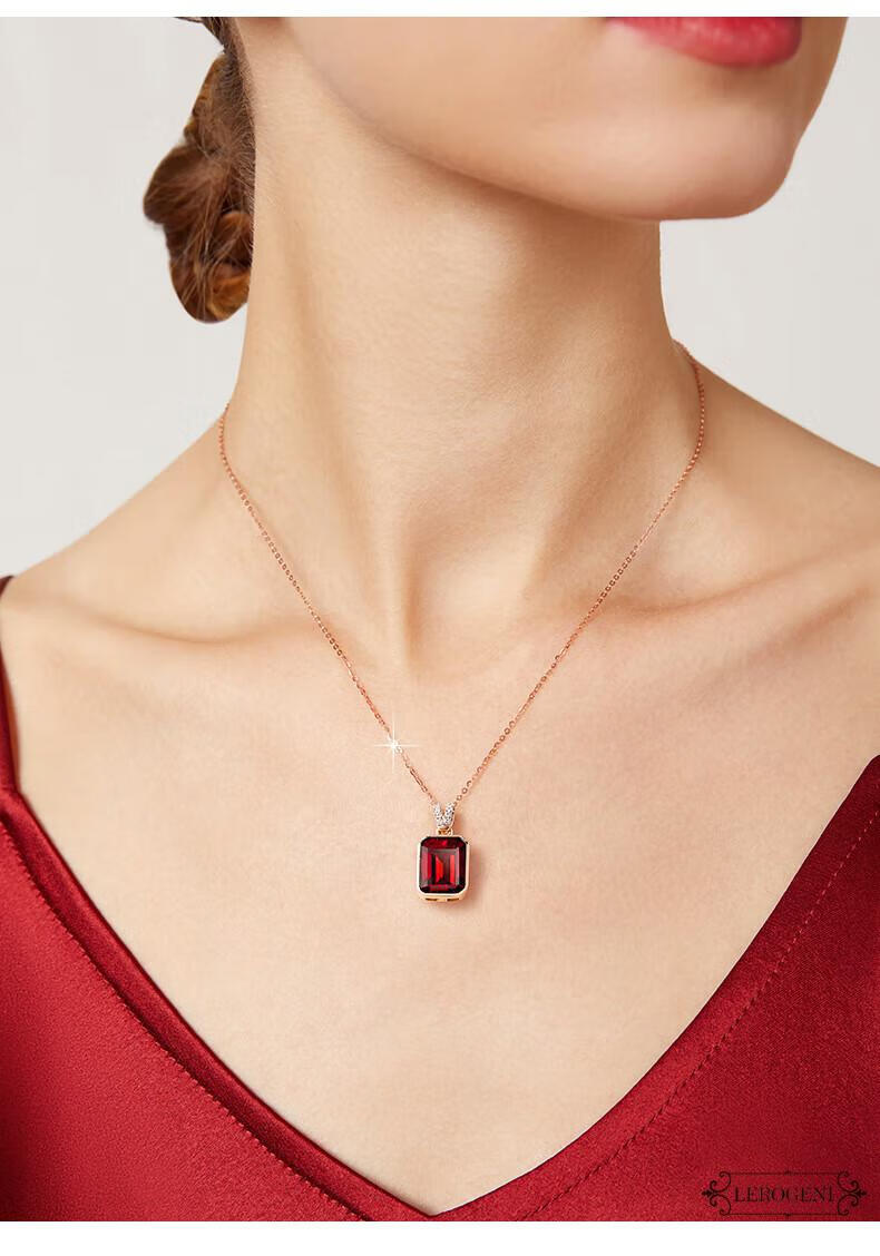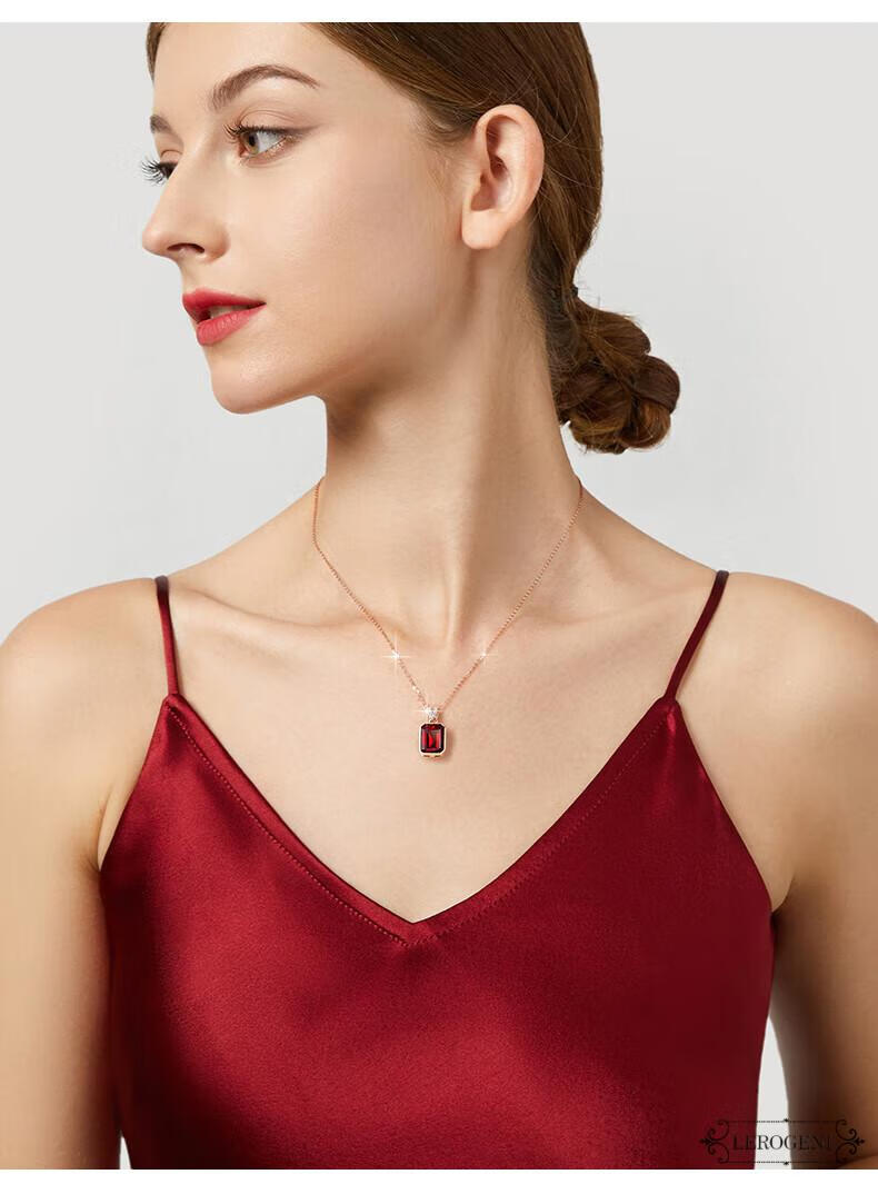 Lirokini Necklace for Women Red Gemstone Garnet Pendant High-end Luxury Jewelry Valentine's Day Birthday Gift Red Cube Sugar-Garnet Necklace Brand Gift Box