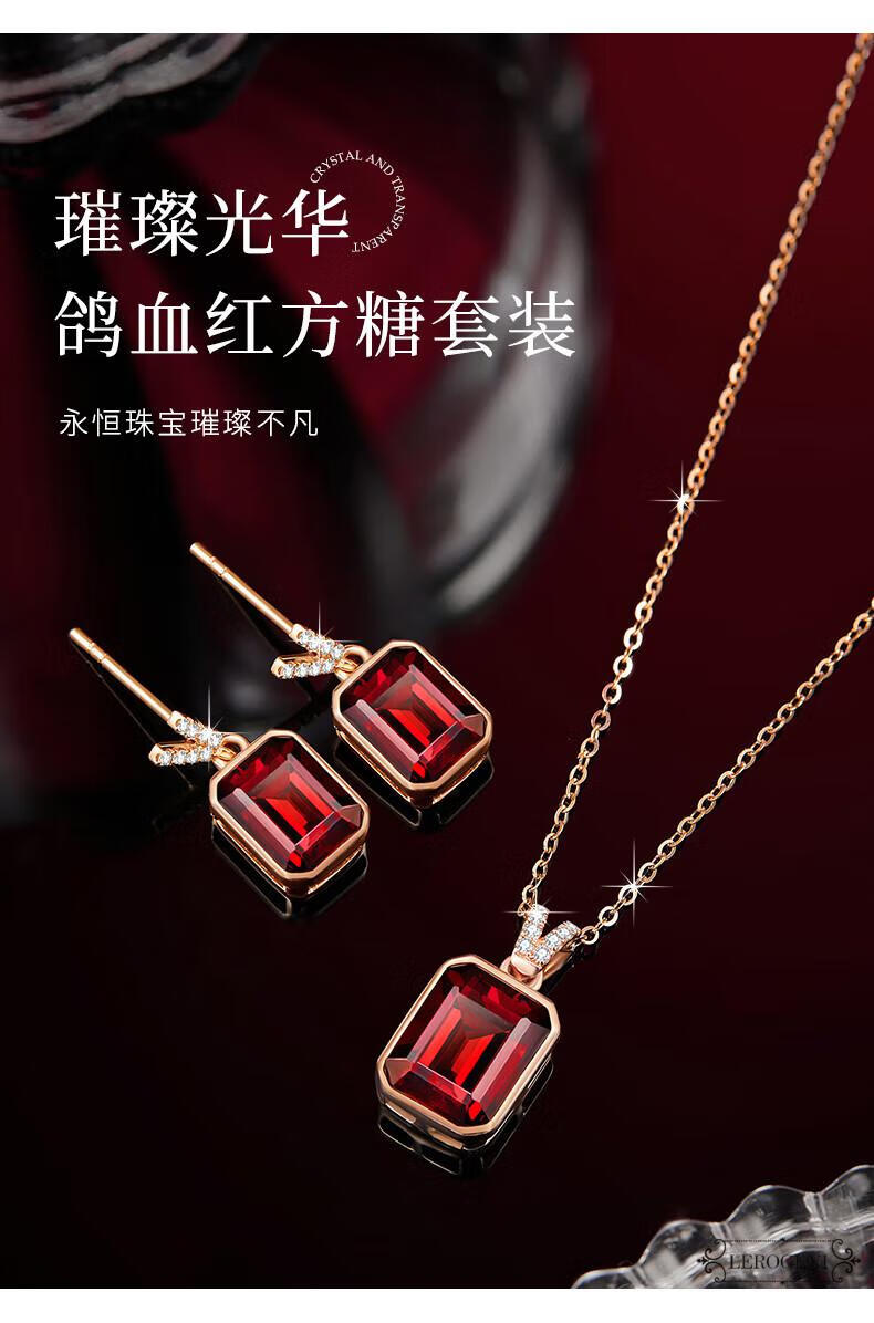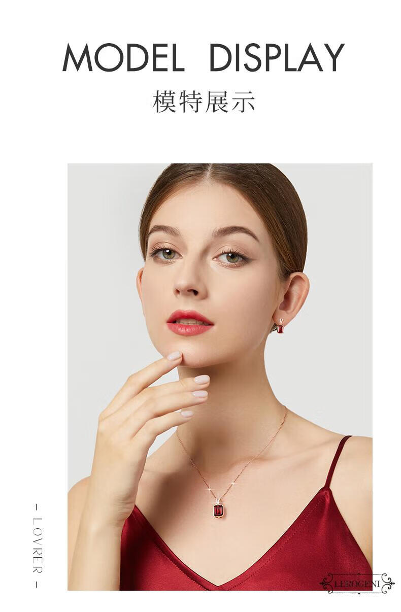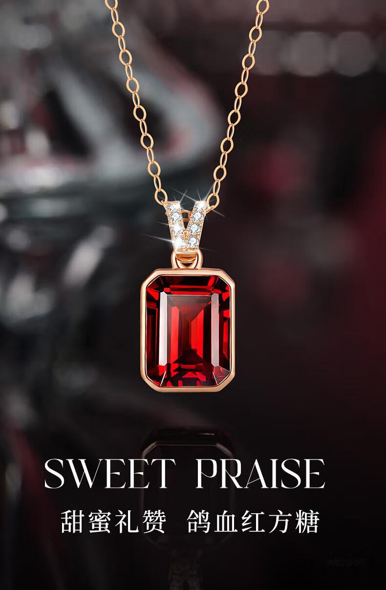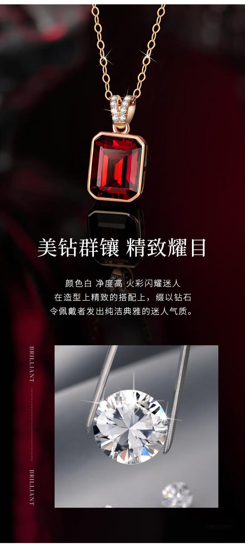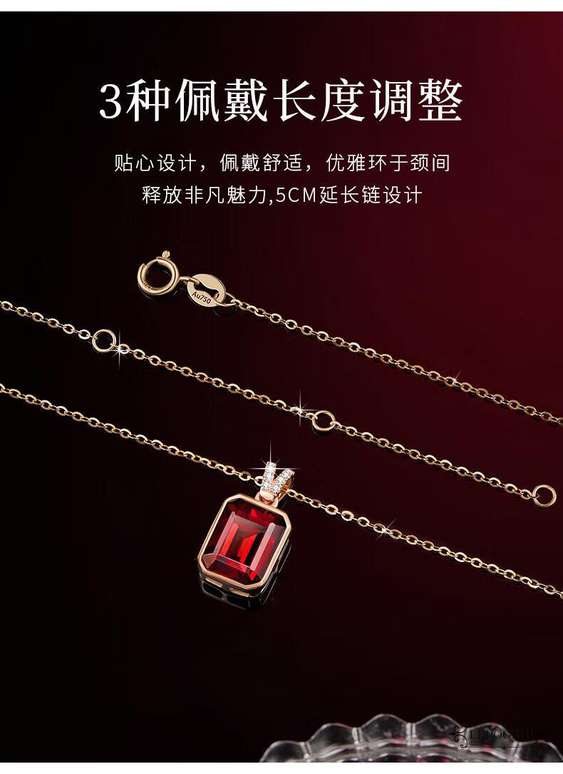 Lirokini Necklace for Women Red Gemstone Garnet Pendant High-end Luxury Jewelry Valentine's Day Birthday Gift Red Cube Sugar-Garnet Necklace Brand Gift Box