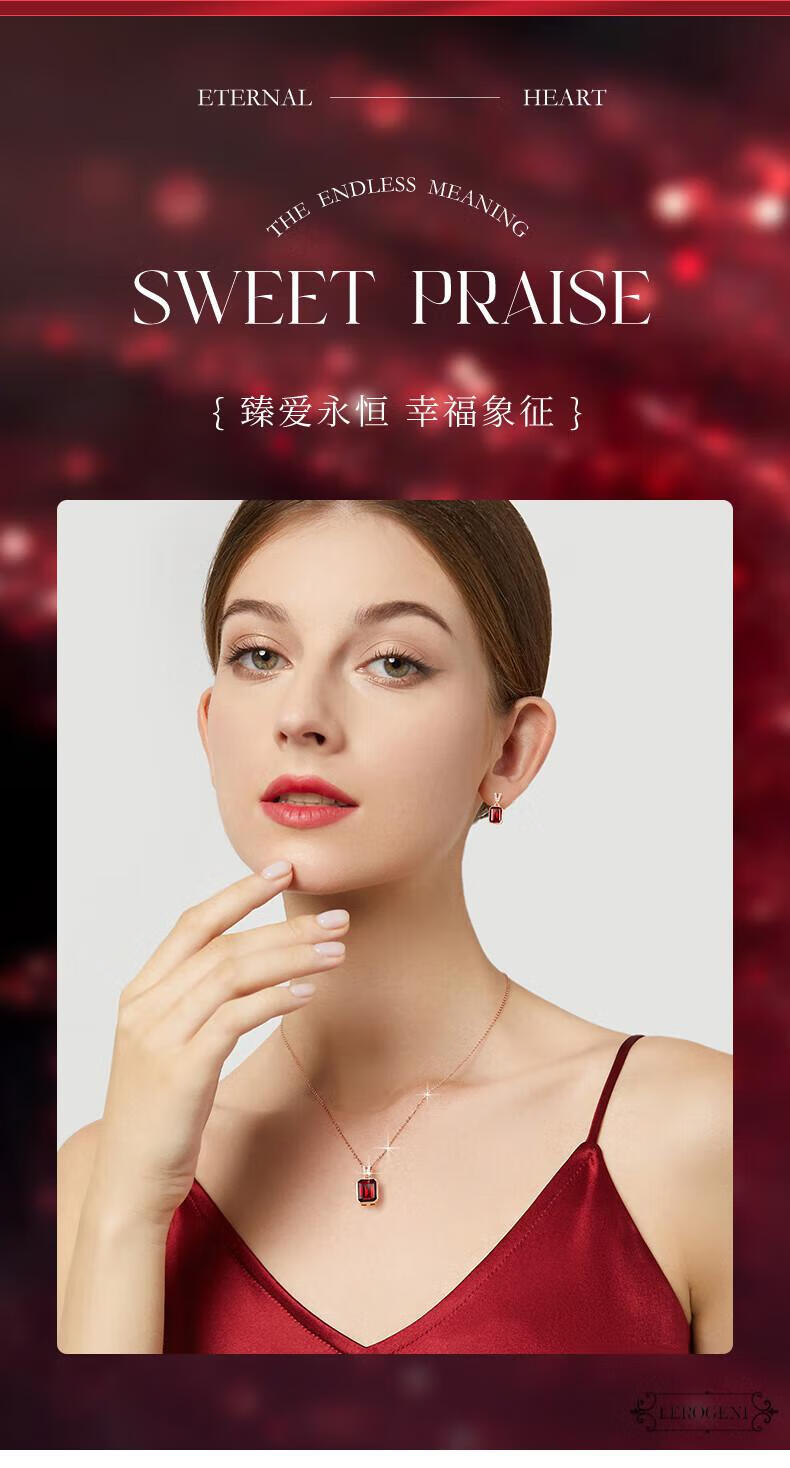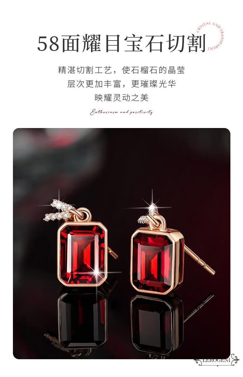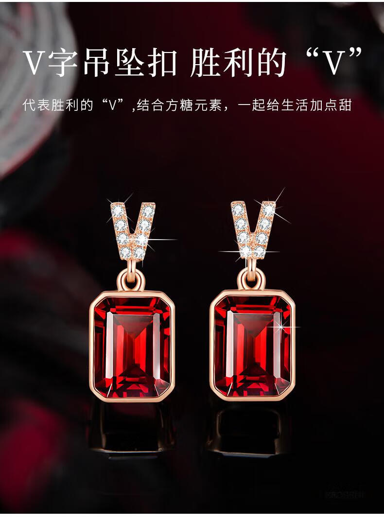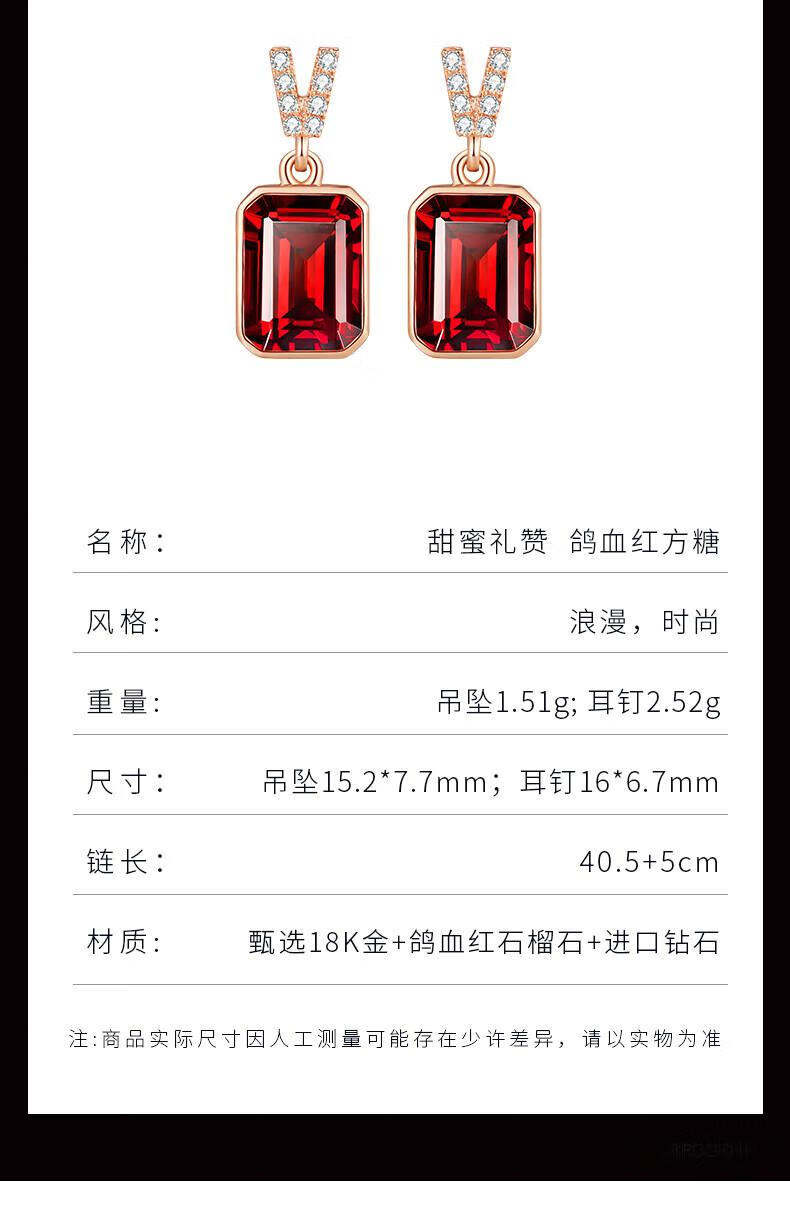 Lirokini Necklace for Women Red Gemstone Garnet Pendant High-end Luxury Jewelry Valentine's Day Birthday Gift Red Cube Sugar-Garnet Necklace Brand Gift Box