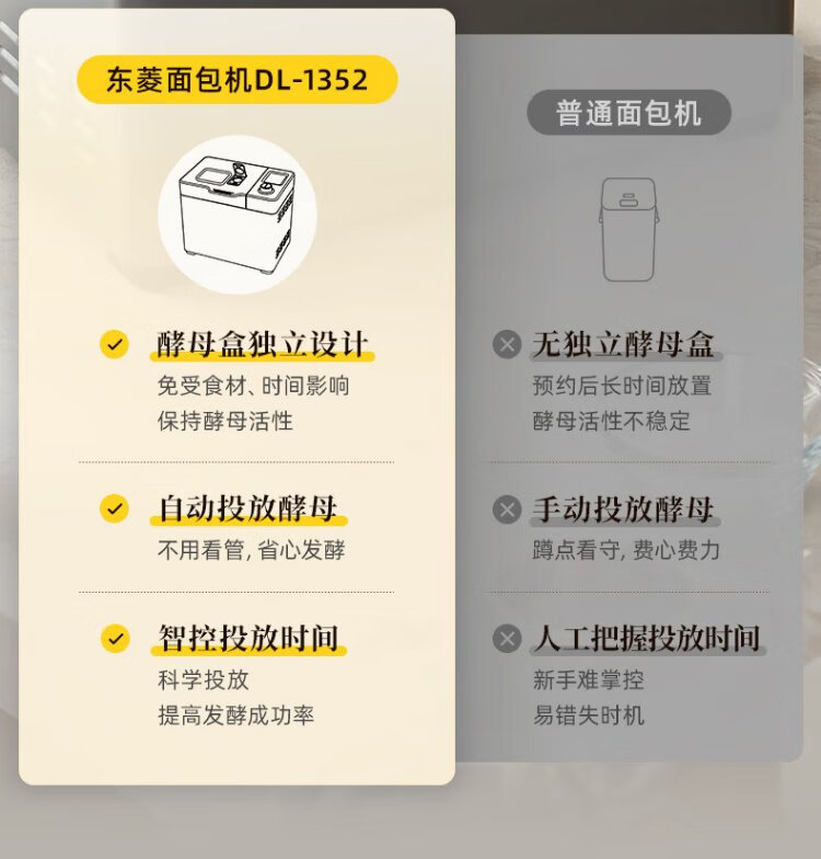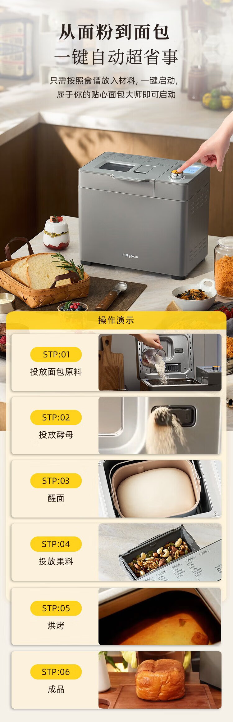 Dongling Toaster Household Dough Mixer Fully Automatic Kneading Dough Floss Toast Yogurt Pickles Fermentation Multifunctional Appointment Breakfast Machine DL-1352 Titanium Gray (Independent Yeast Box)