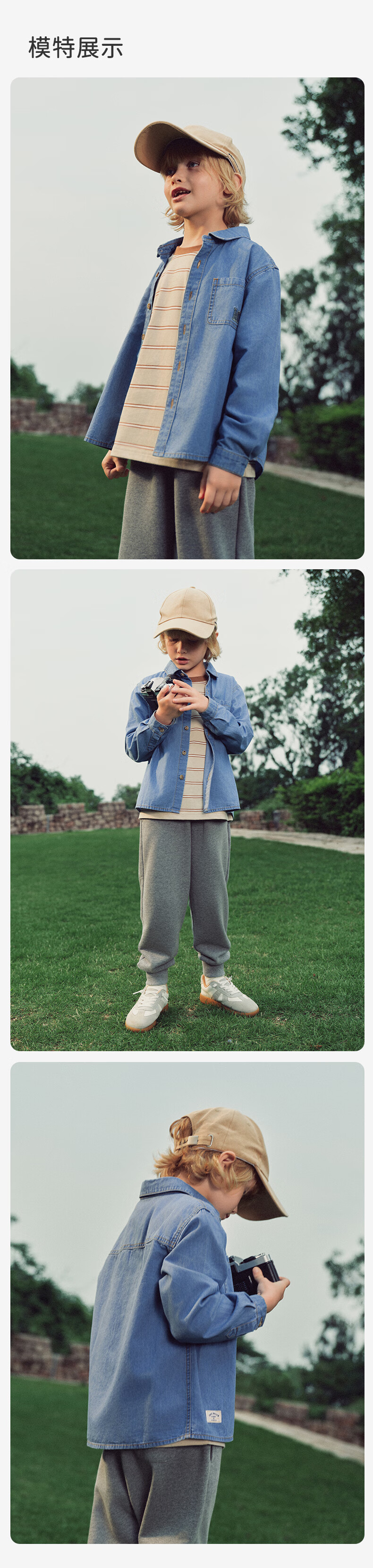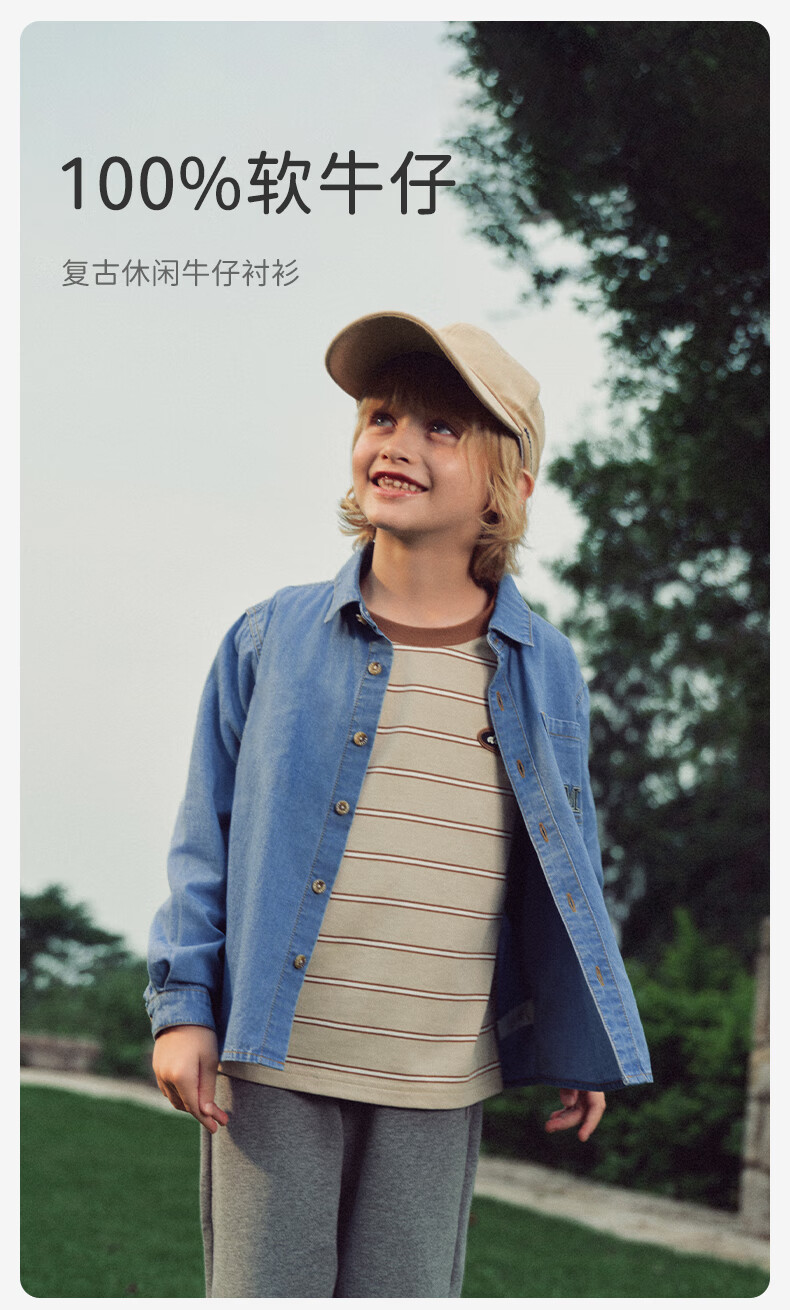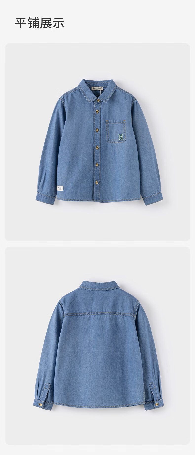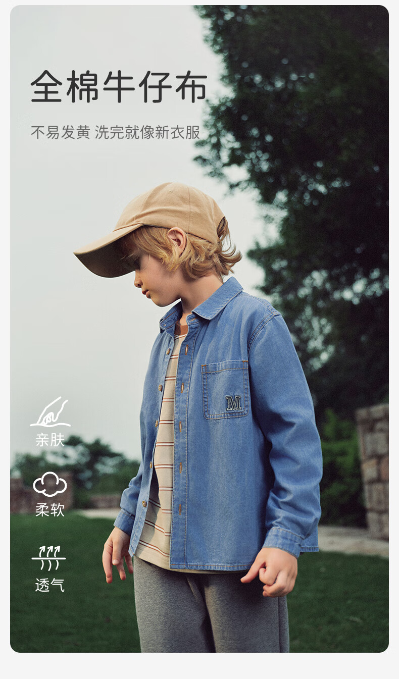 DAVE&BELLA children's long-sleeved tops boys' denim shirts medium and large children's clothes spring new children's clothing little boy's shirt denim blue ready stock 110 cm (recommended height 100-110cm)