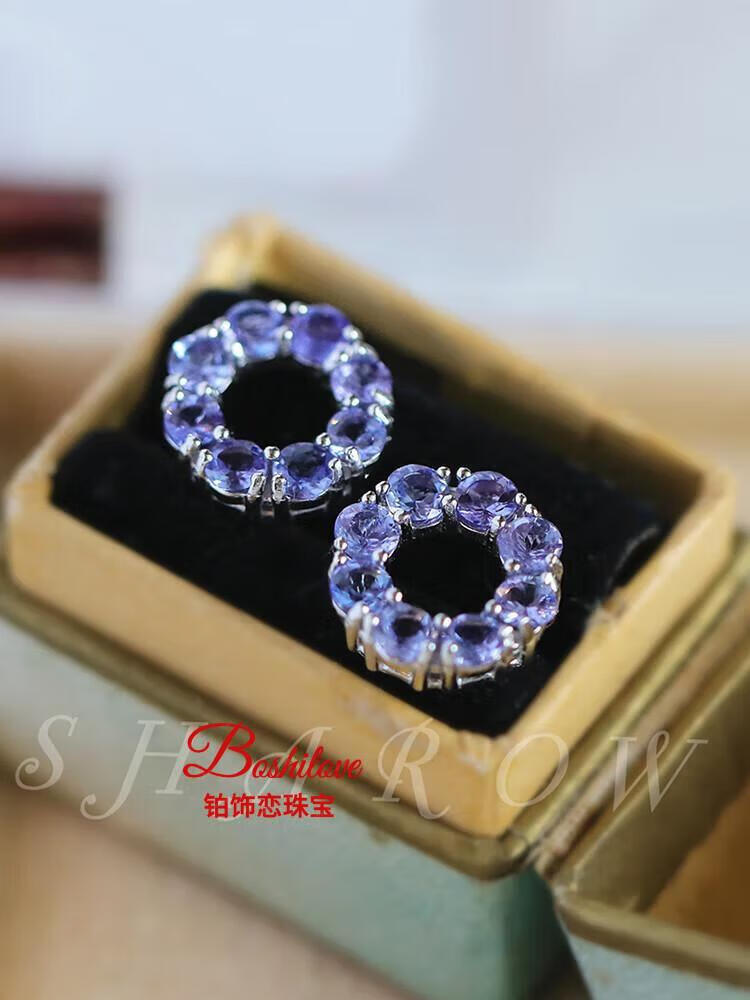 DL 1998 Fat Donglai same style tanzanite earrings natural l natural tanzanite women's 925 silver amethyst color treasure earrings earrings simple natural | natural tanzanite amethyst A earrings