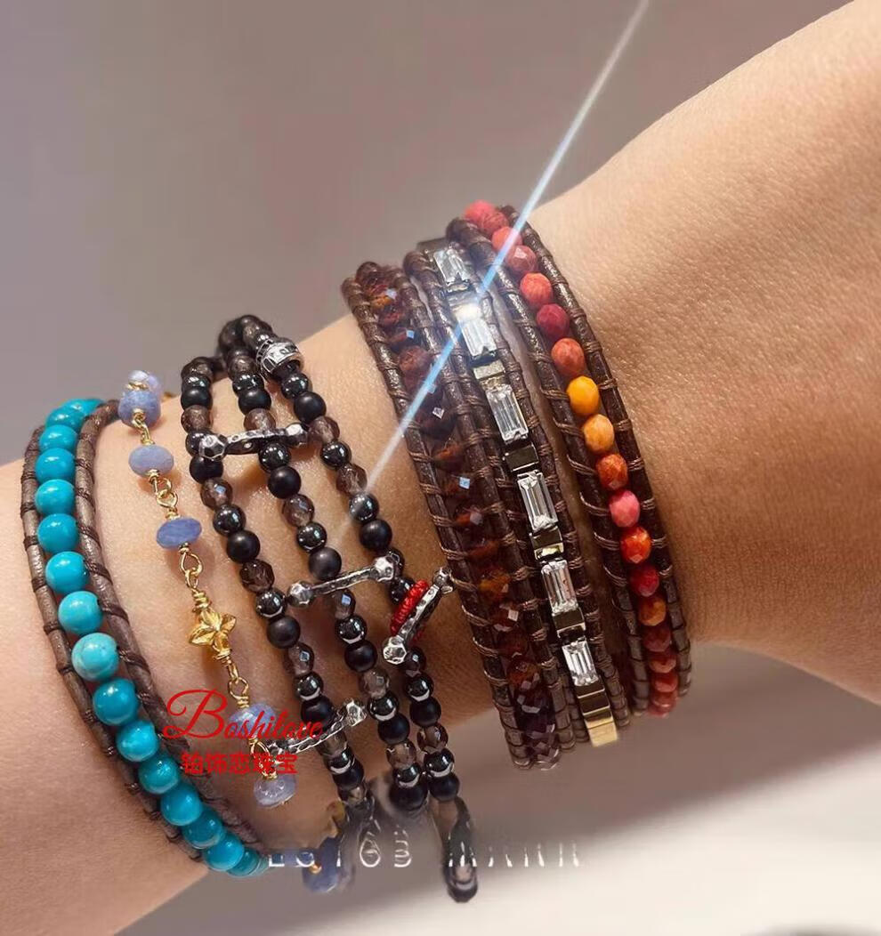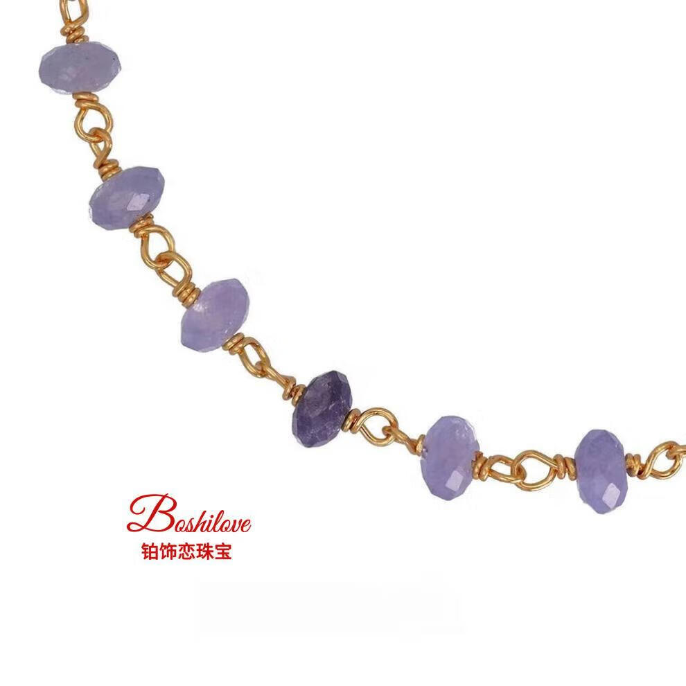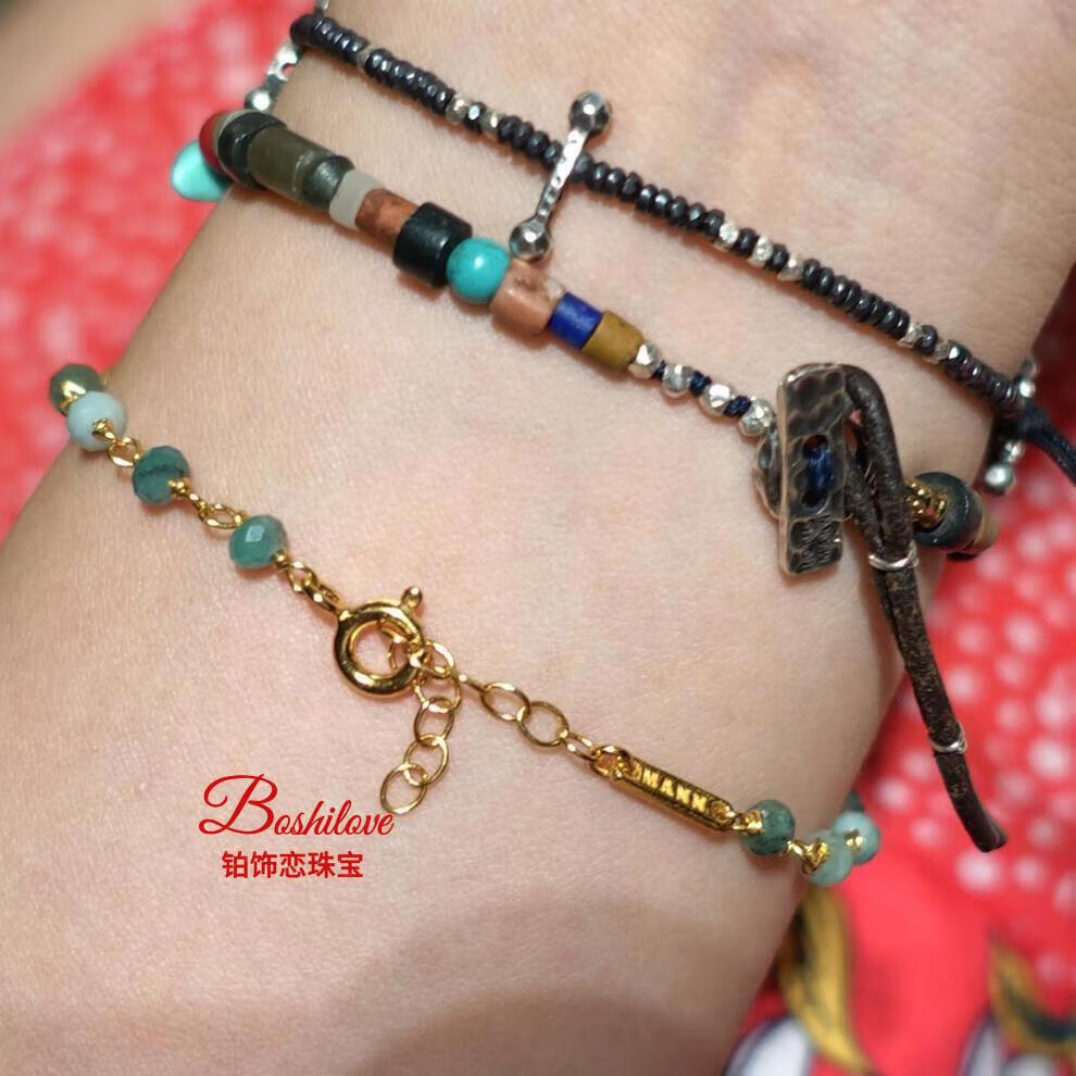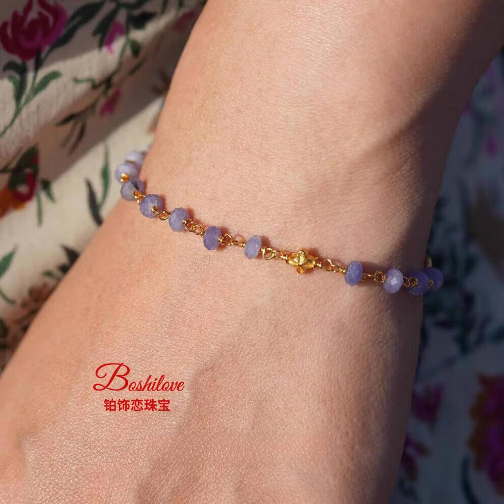 DL 1998 Fat Donglai same style tanzanite bracelet four leaf clover and emerald 925 silver gold plated high color retention micron gold plated tanzanite one size fits all