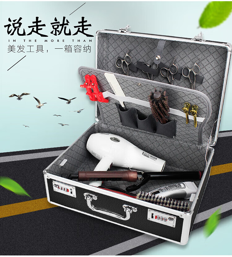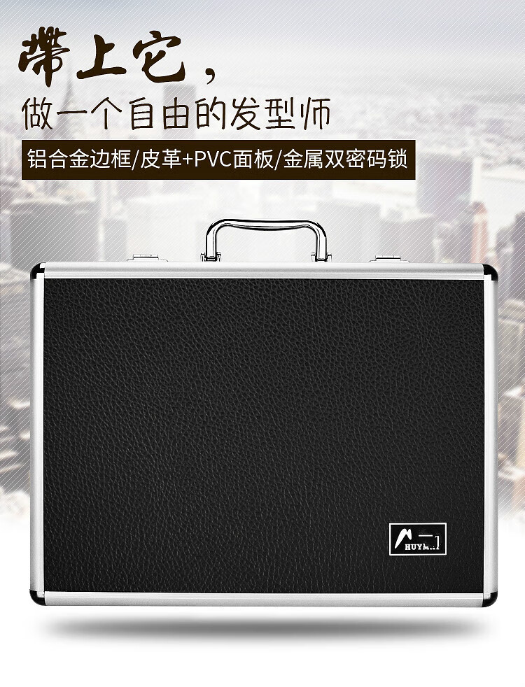 Diliang Hairdressing Tool Bag Hairdressing Scissor Storage Box Portable Hairstylist Aluminum Alloy Double Password Multi-function Black Black Leather Texture