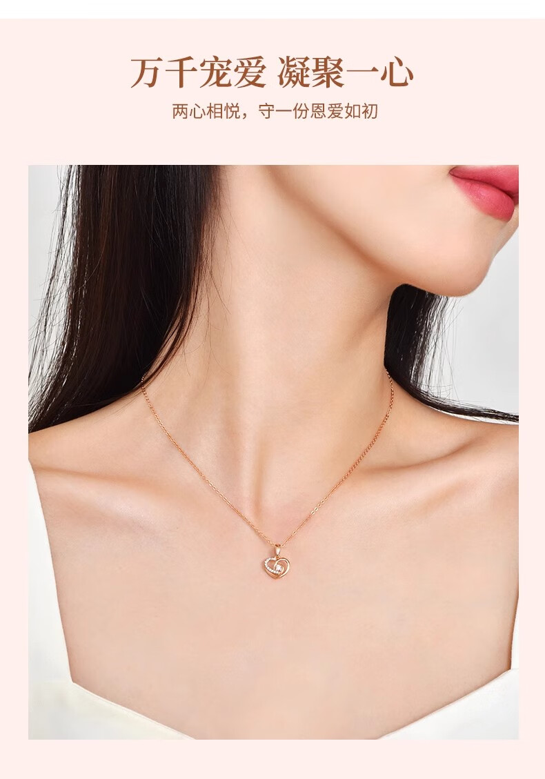 Yadige 18 gold k love necklace for women, light luxury pendant, rose gold clavicle chain, Valentine's Day gift for girlfriend's birthday, 18 gold k love necklace