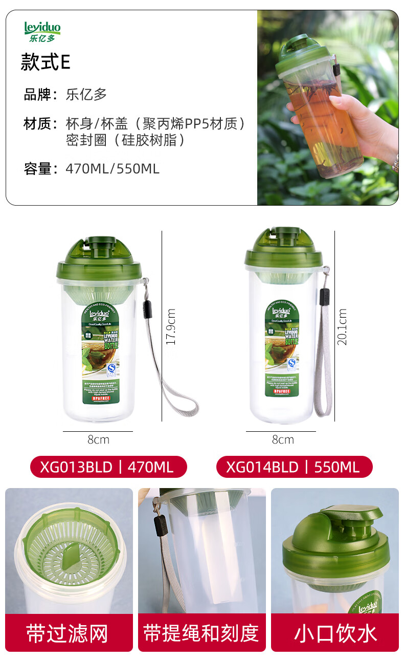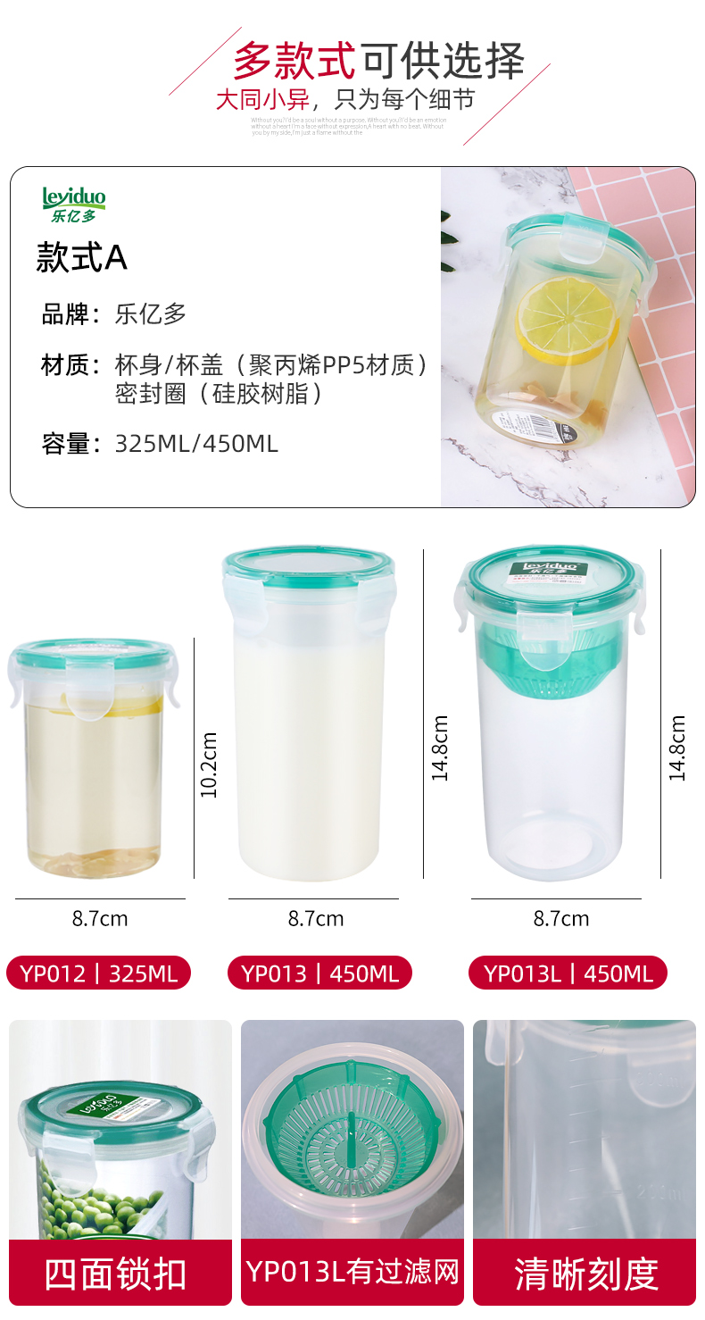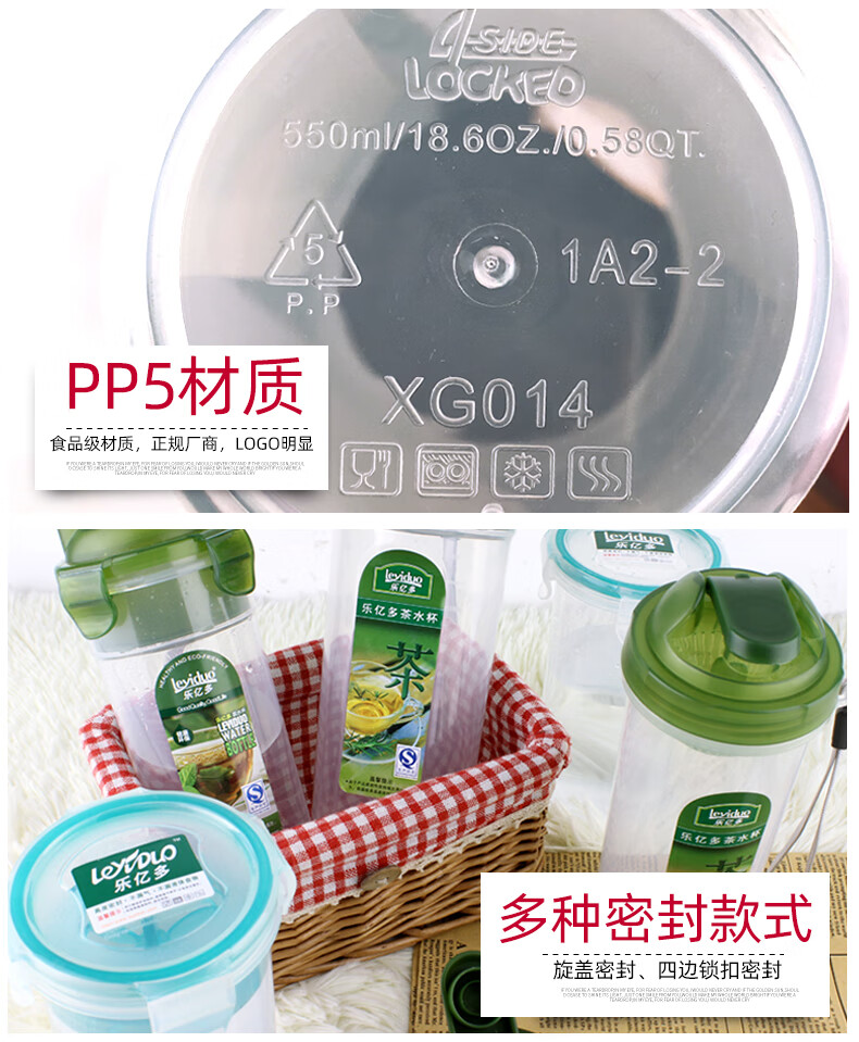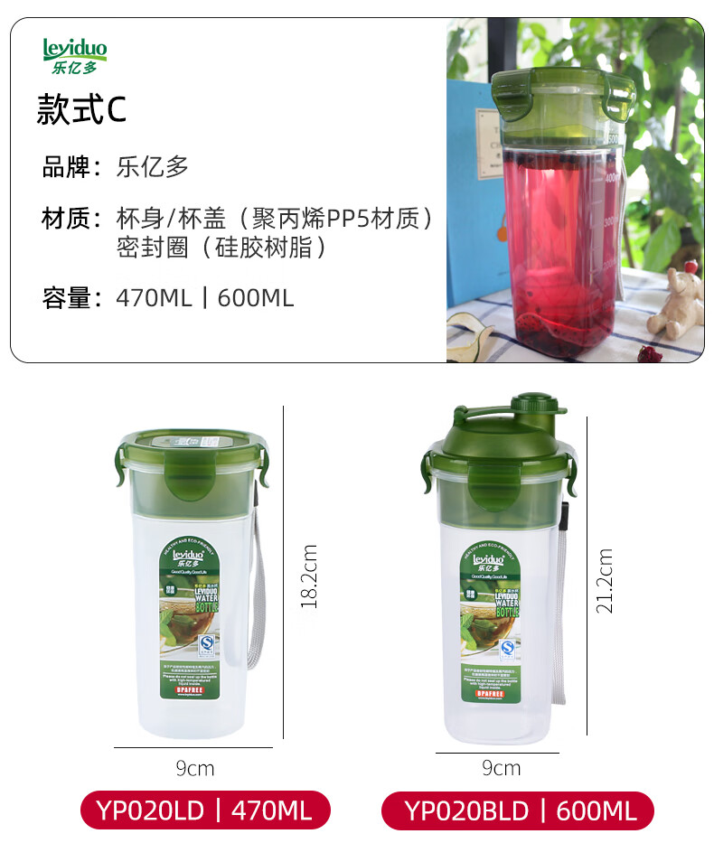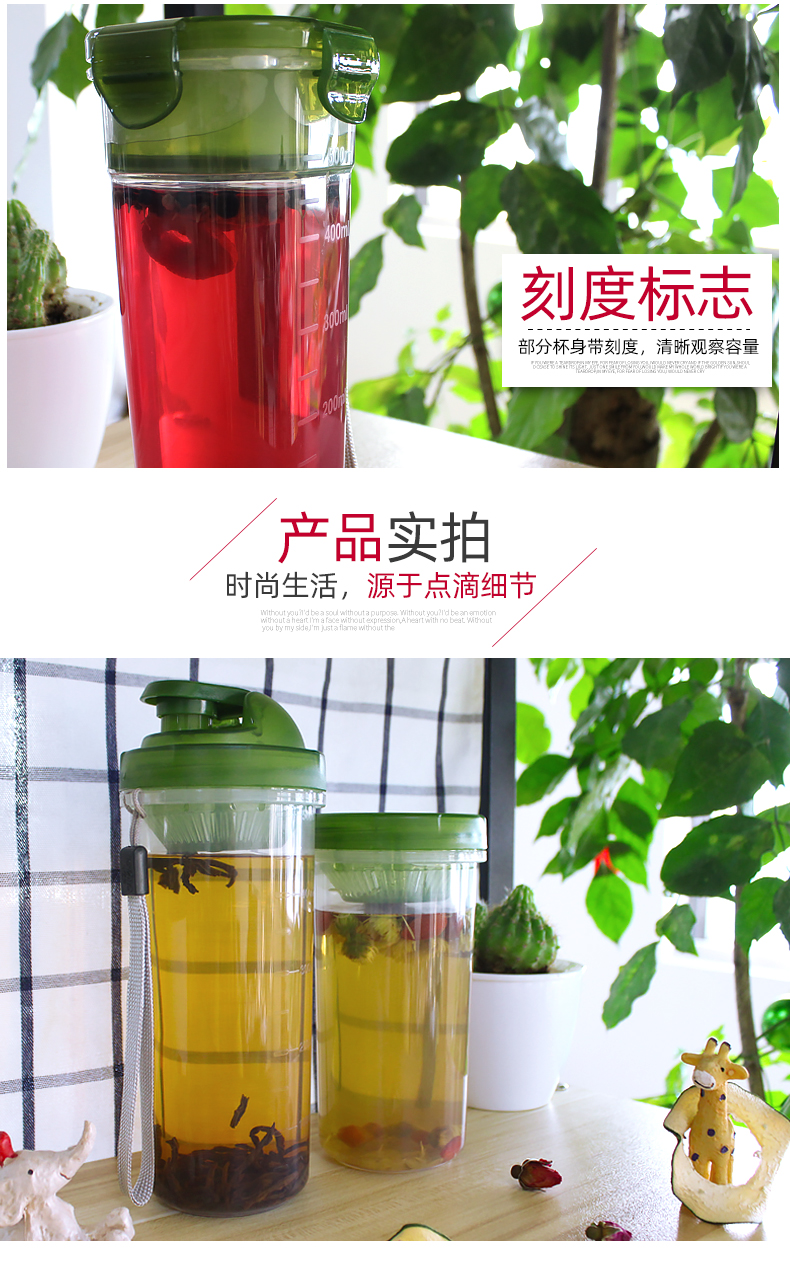Leyiduo plastic sealed water cup, leak-proof cup with lid and tea leak, convenient summer sports water bottle travel cup, ear buckle type/with scale 450ml