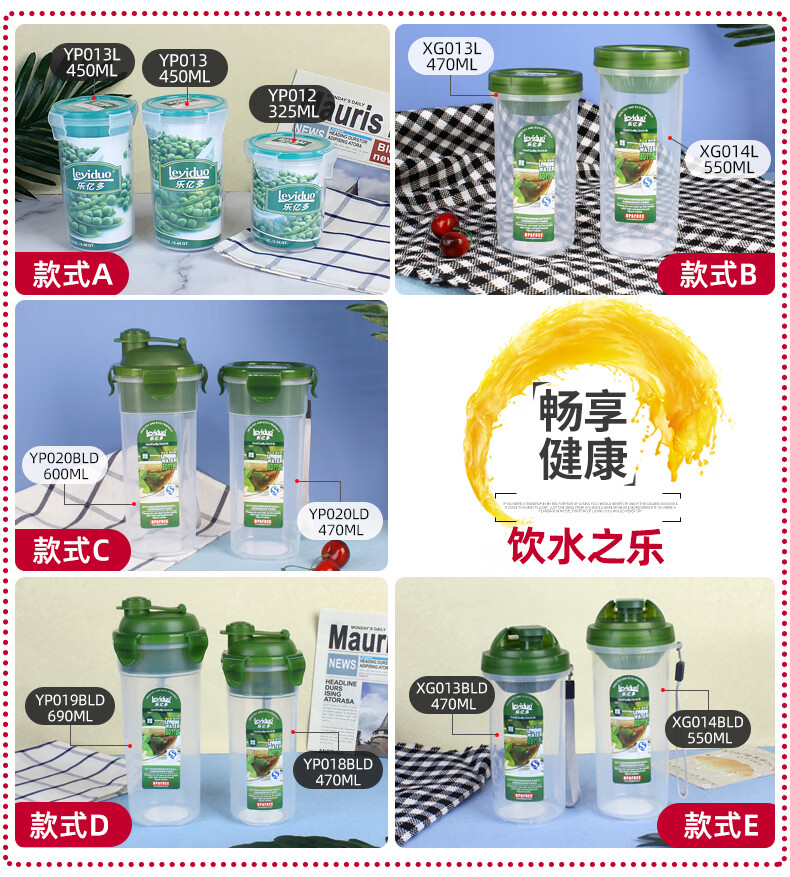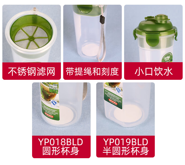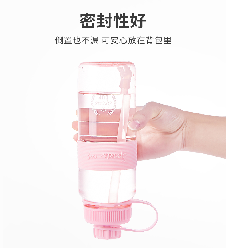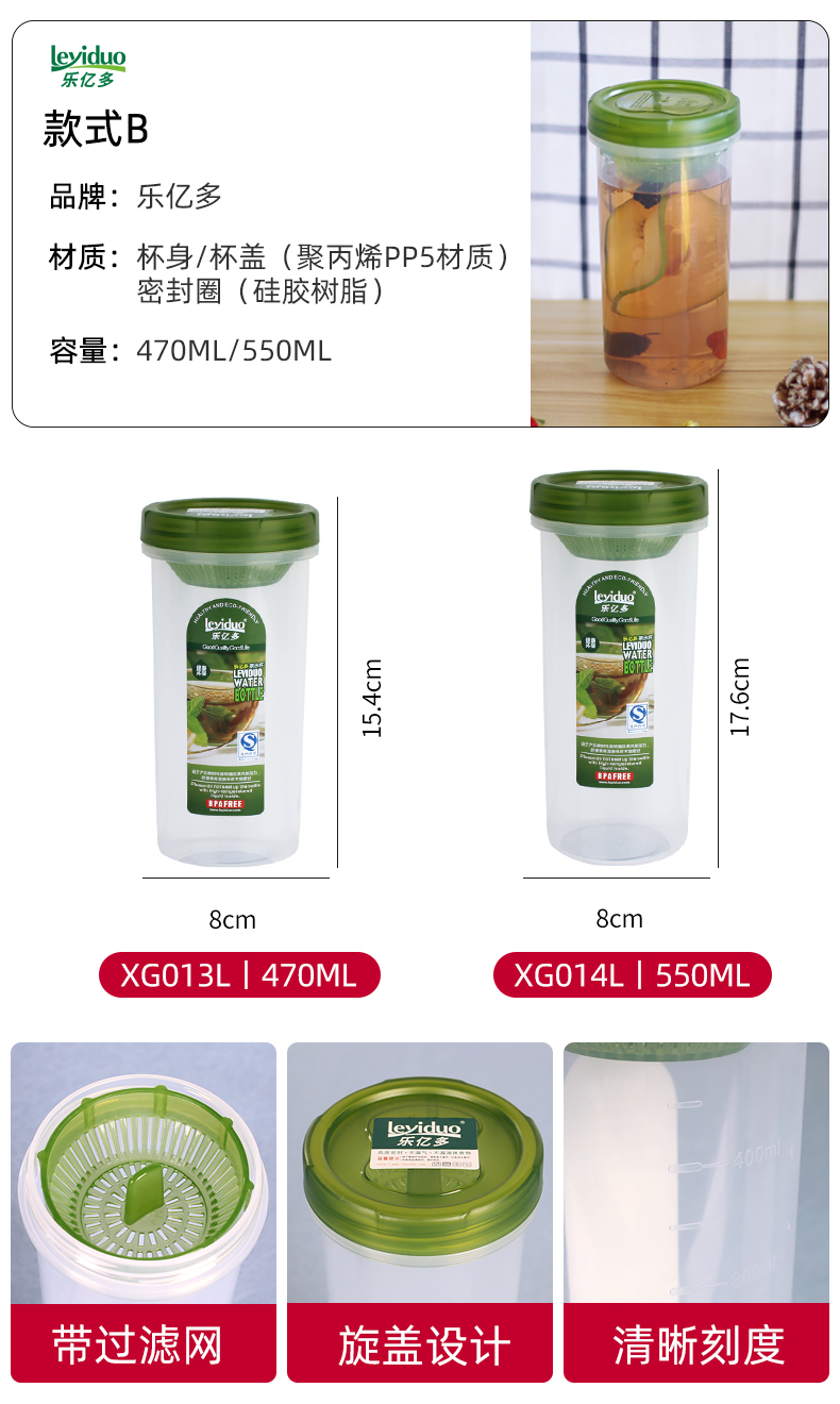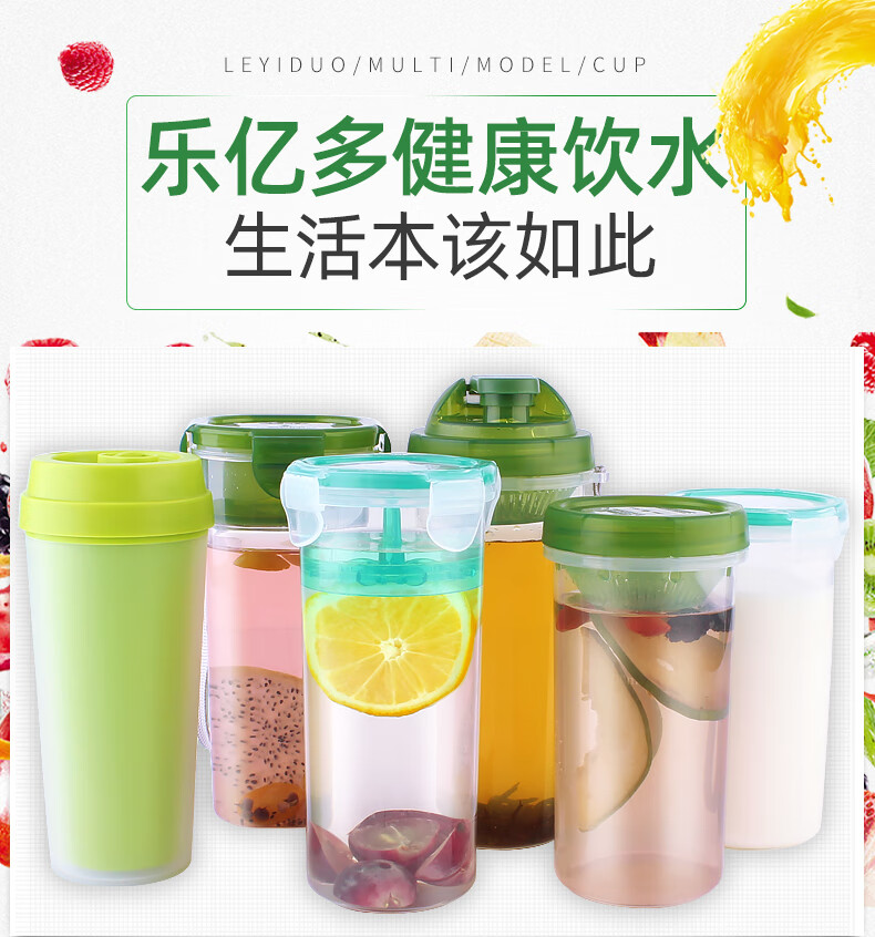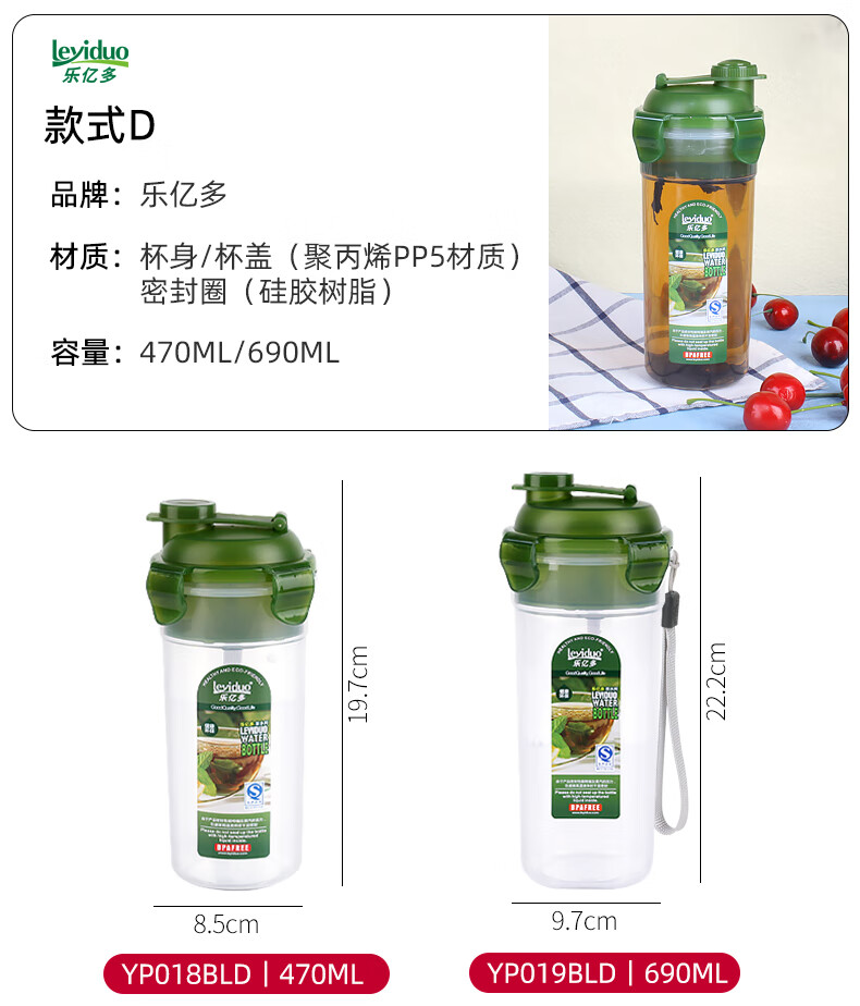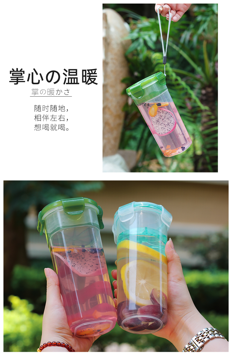 Leyiduo plastic sealed water cup, leak-proof cup with lid and tea leak, convenient summer sports water bottle travel cup, ear buckle type/with scale 450ml