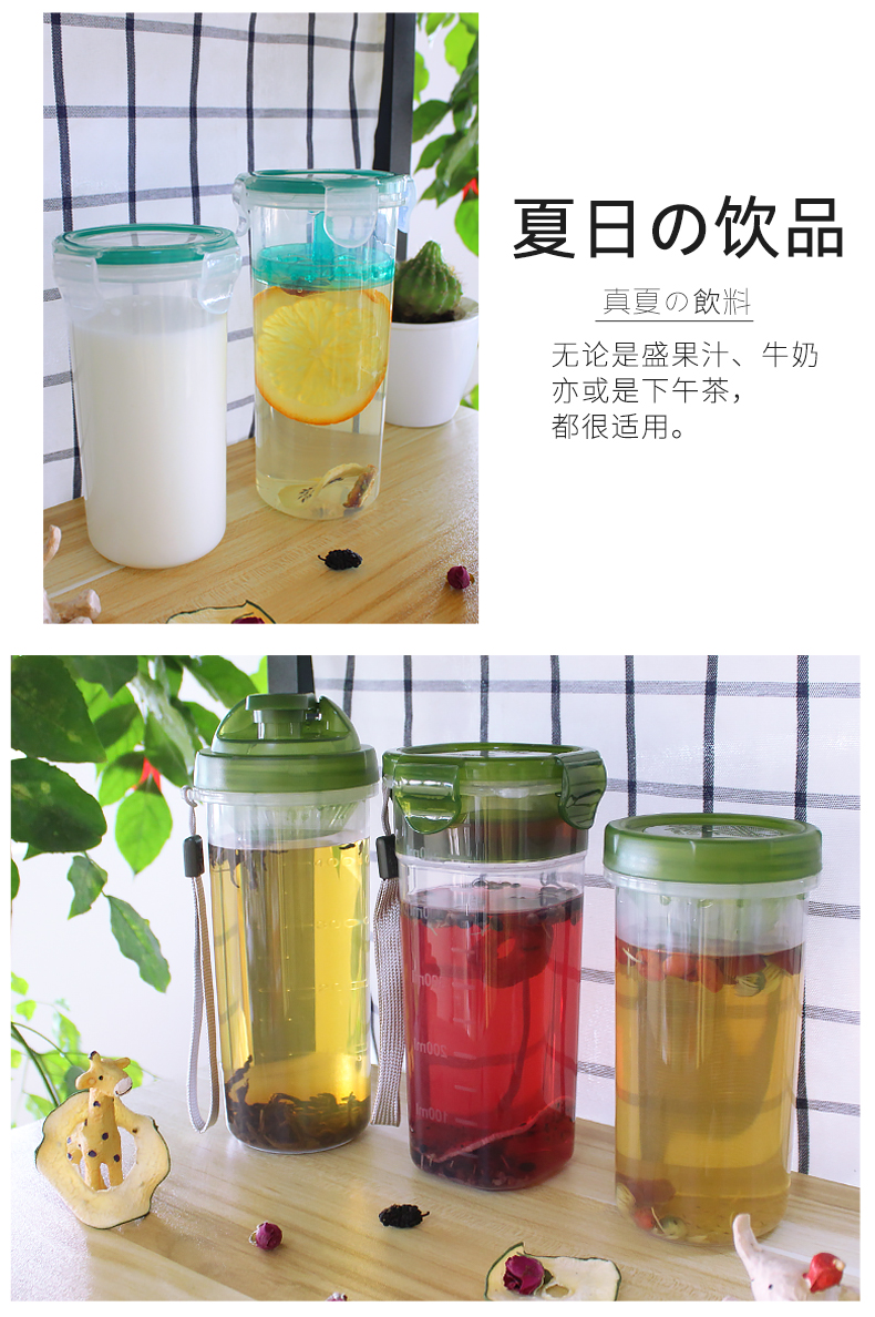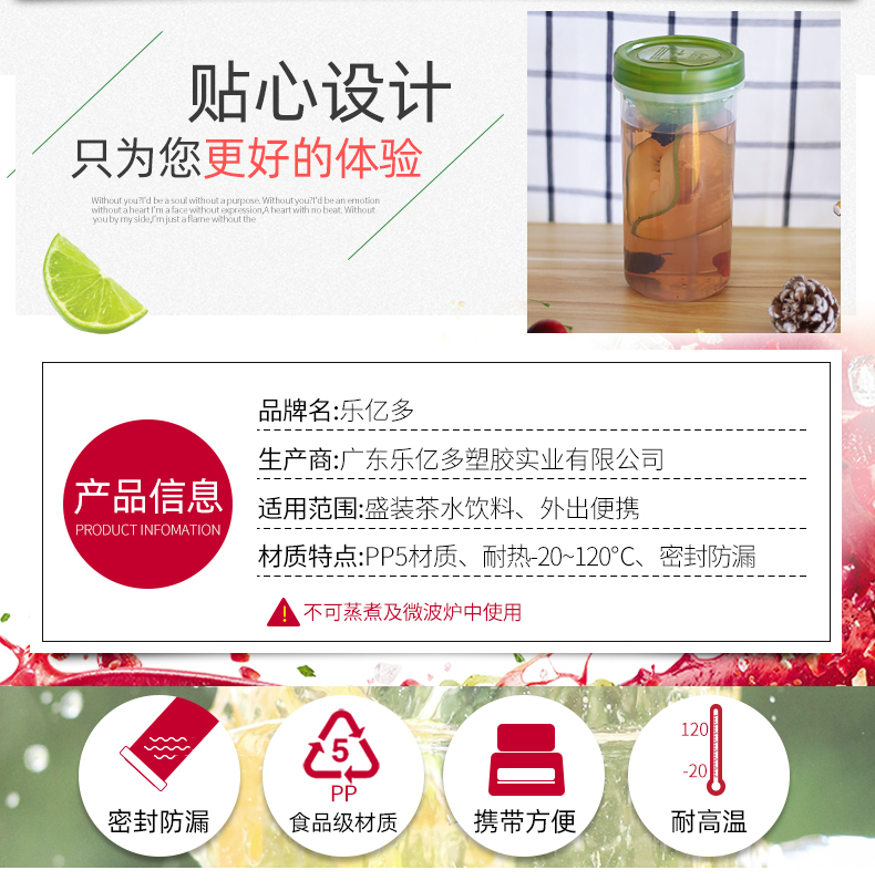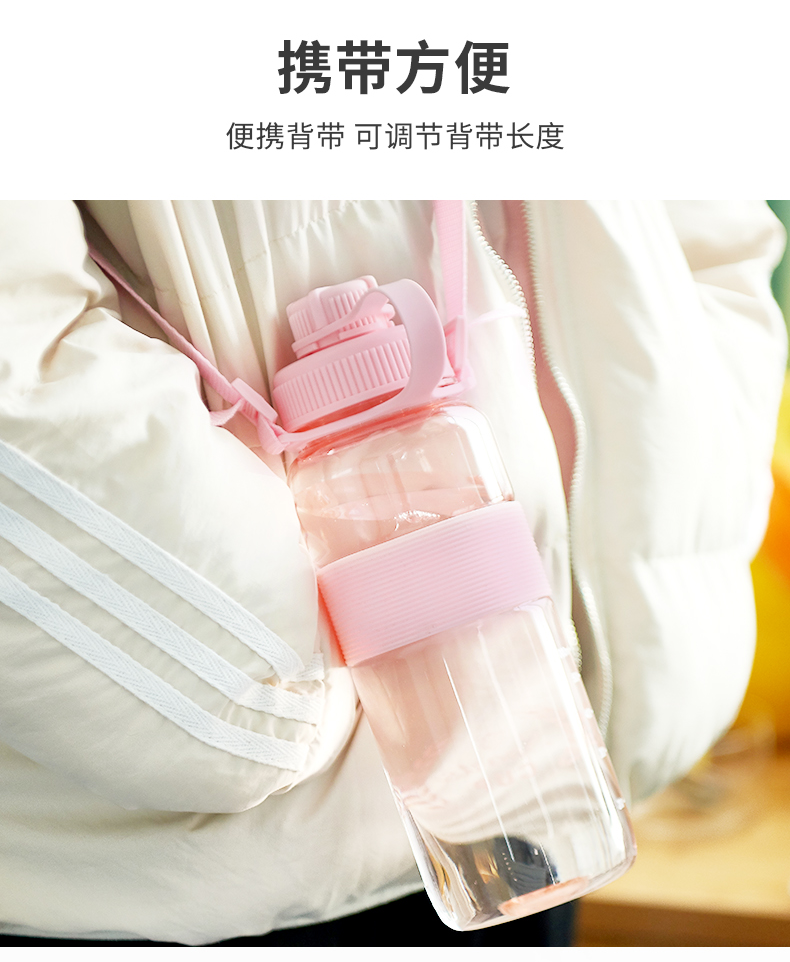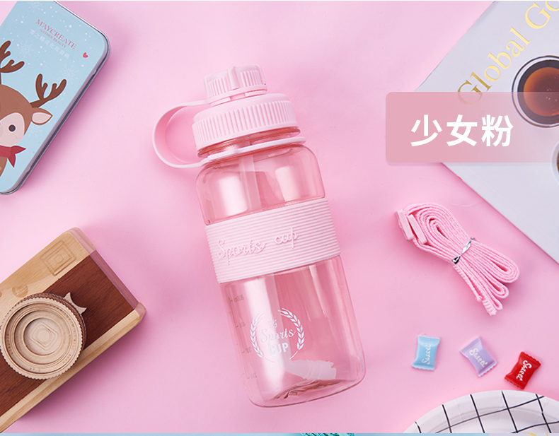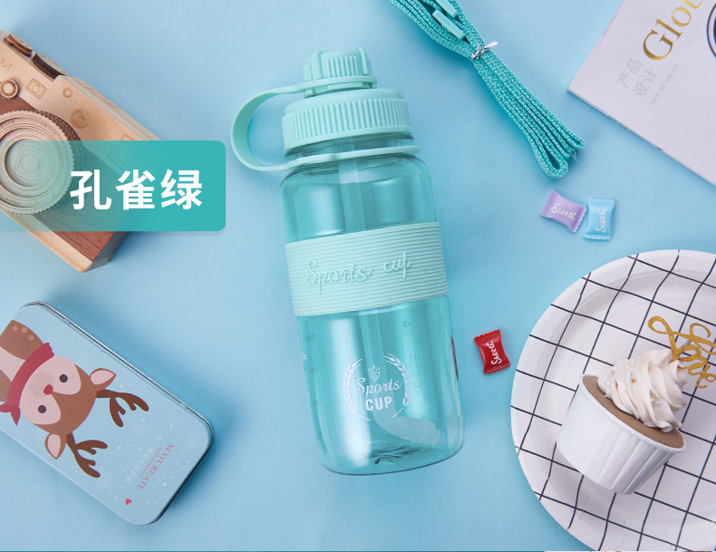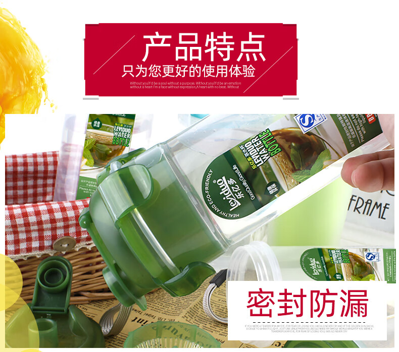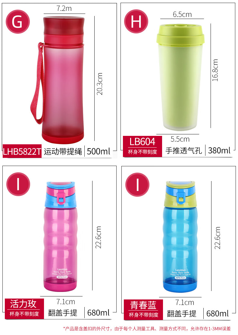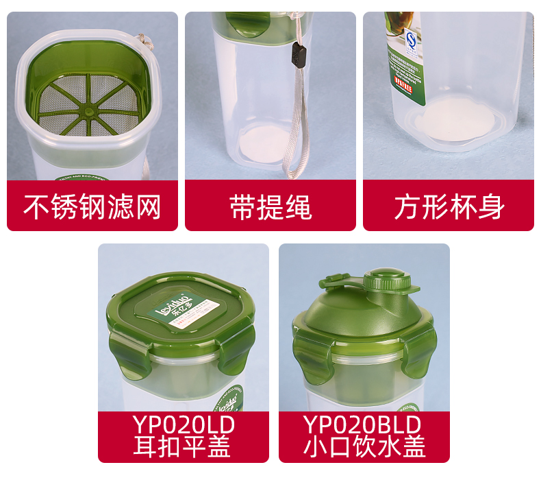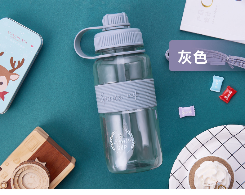 Leyiduo plastic sealed water cup, leak-proof cup with lid and tea leak, convenient summer sports water bottle travel cup, ear buckle type/with scale 450ml