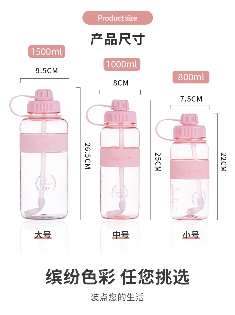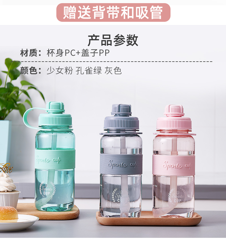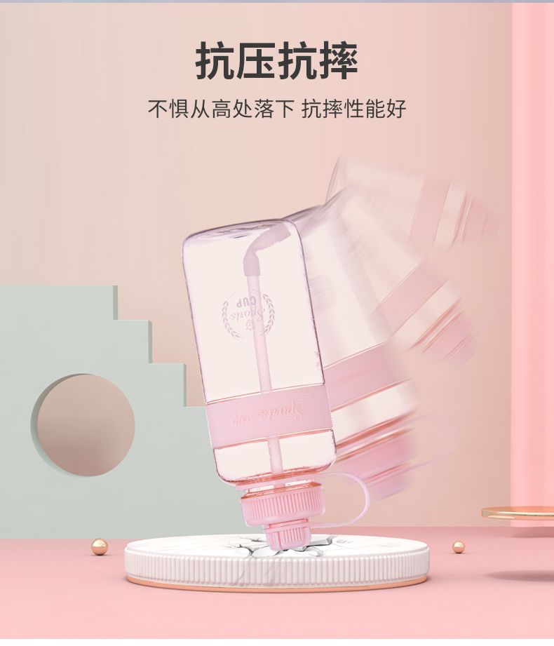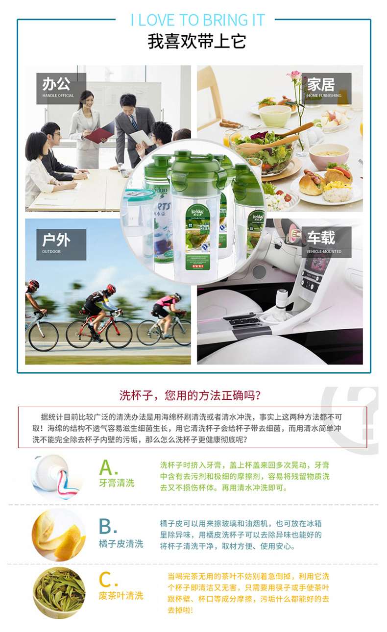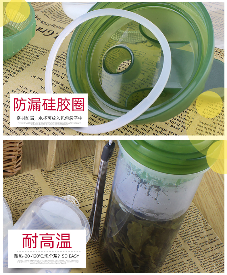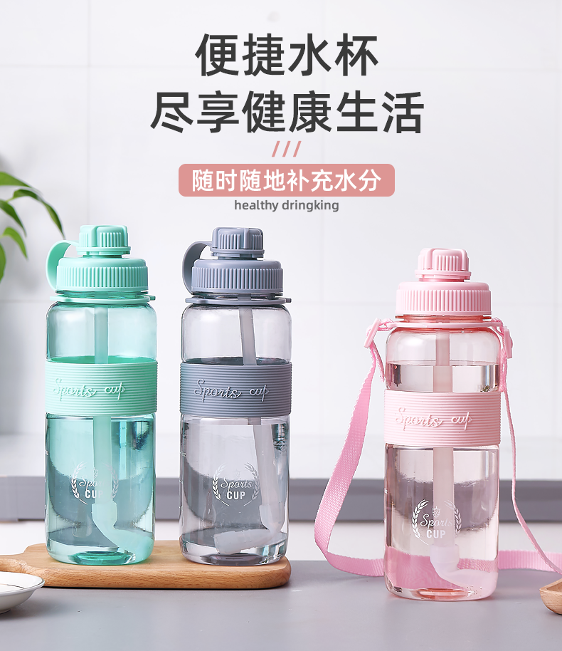 Leyiduo plastic sealed water cup, leak-proof cup with lid and tea leak, convenient summer sports water bottle travel cup, ear buckle type/with scale 450ml