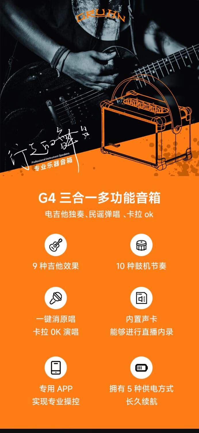 Aiwegruen electric guitar speaker G4 guitar playing and singing special speaker outdoor charging portable bluetooth electric wind instrument G4 speaker + gift