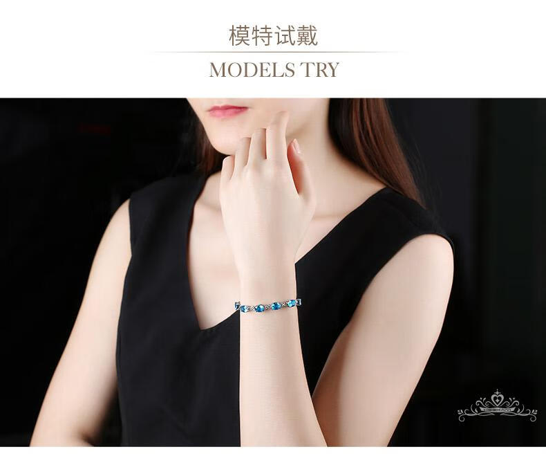 Haikai Bracelet Women's Sapphire Heart of the Ocean Bracelet Luxury Jewelry Valentine's Day Birthday Gift for Wife 5A Grade Topaz Bracelet (8.54 carats/Selected Flawless)