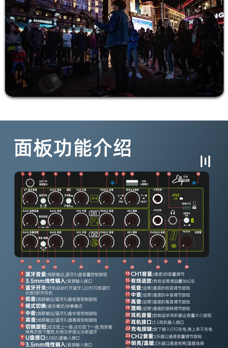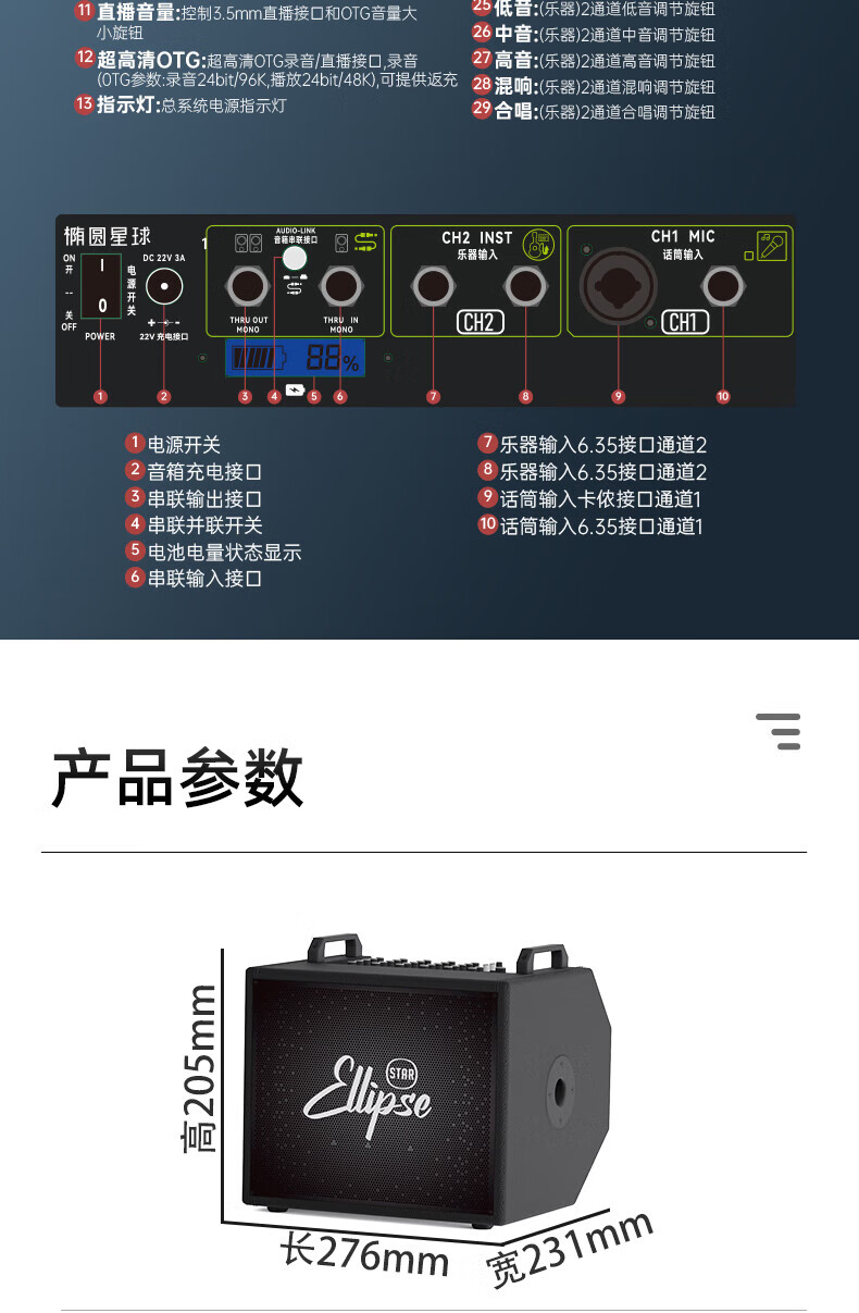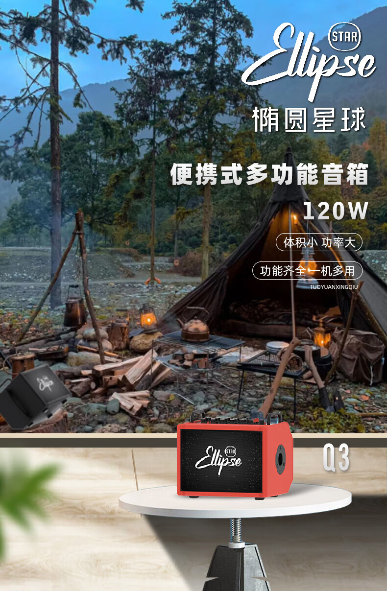 Oval Planet 120W outdoor speaker Q3 guitar electric blowpipe audio folk charging Bluetooth live broadcast internal recording playing and singing musical instrument audio Q3 black 120W