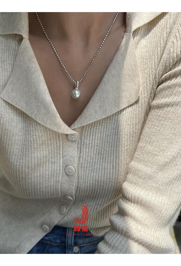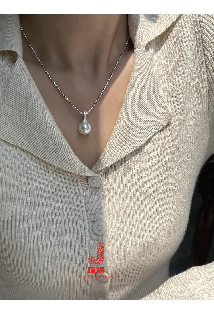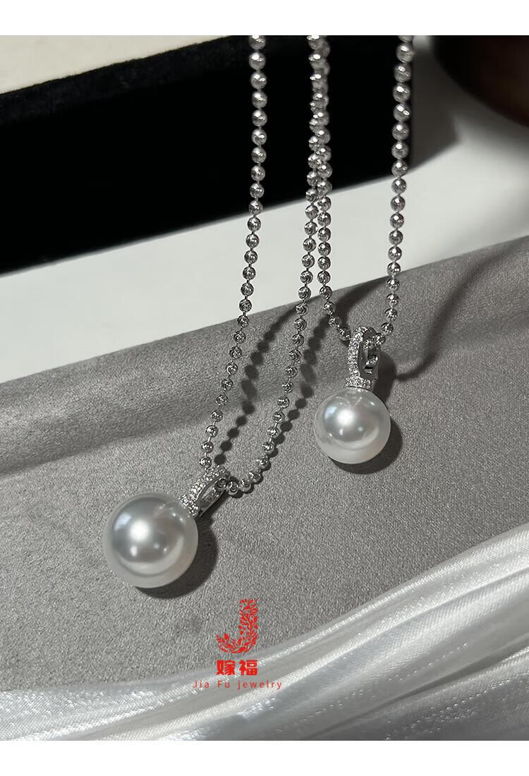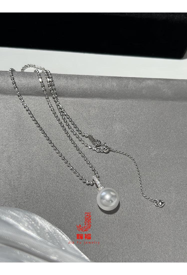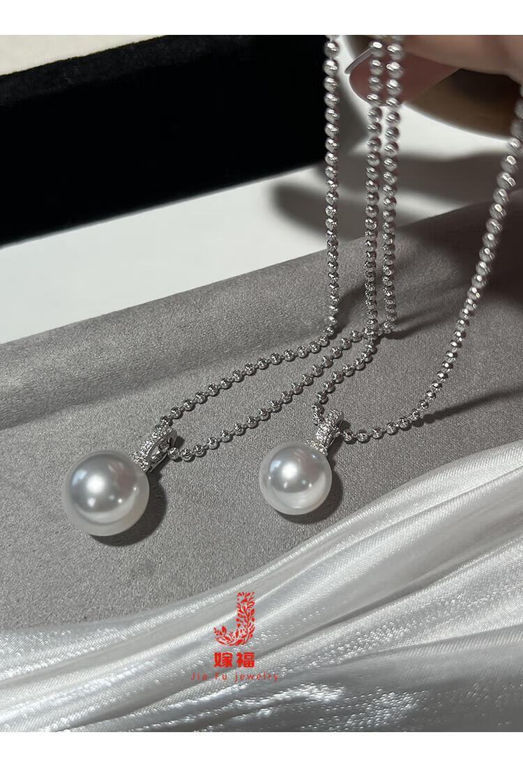 Fat Donglai quality Australian white pearl pendant Fang Tangjia Brilliant crystal buckle silver glitter bead necklace 14mm artificial Australian white pearl necklace