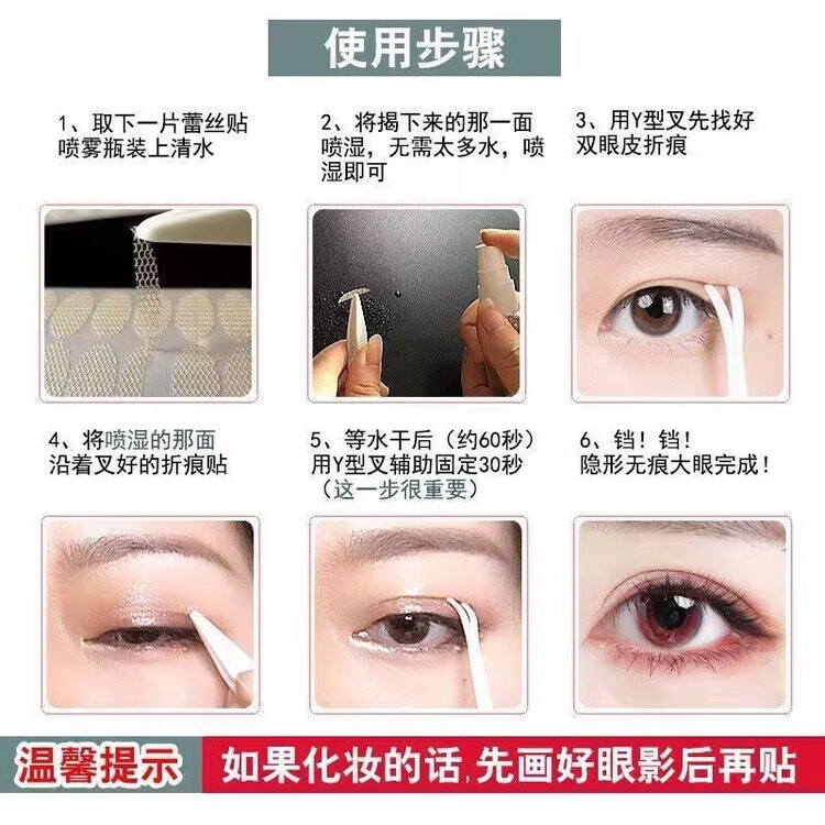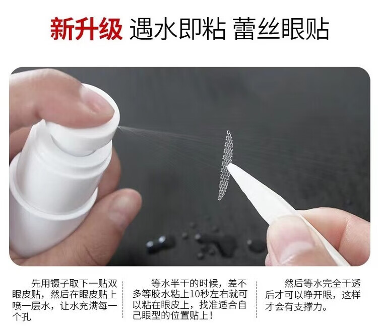 Widened and enlarged European style lace double eyelid patch, invisible and traceless, improves sagging eyelids and sticks when exposed to water. XL size (with fork + tweezers + spray bottle) 540 patches