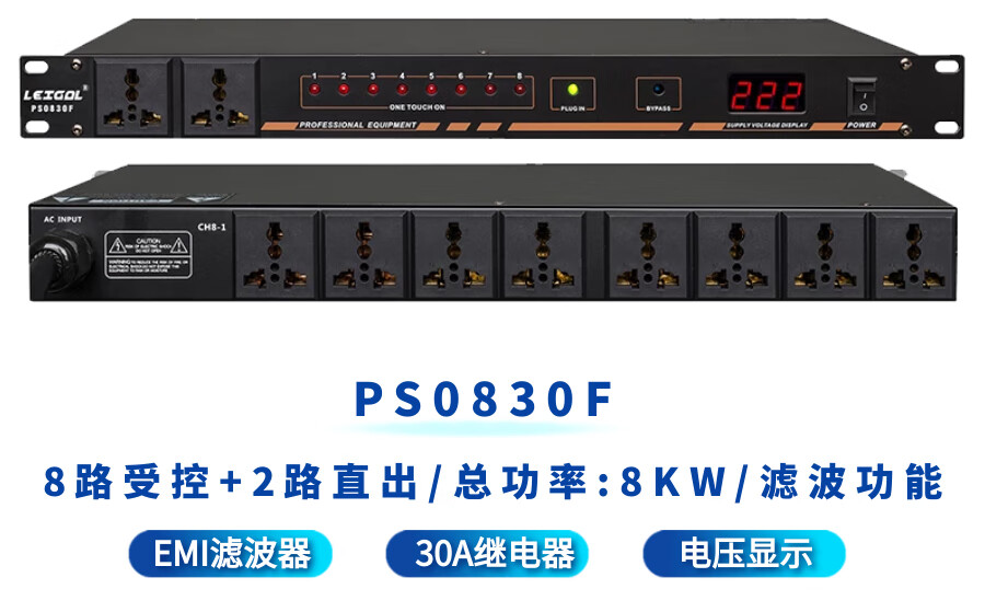 Leijia power sequencer filter sequence power manager central control RS232 serial port sequence power controller power sequencer PS0830 voltage display + 5-year warranty