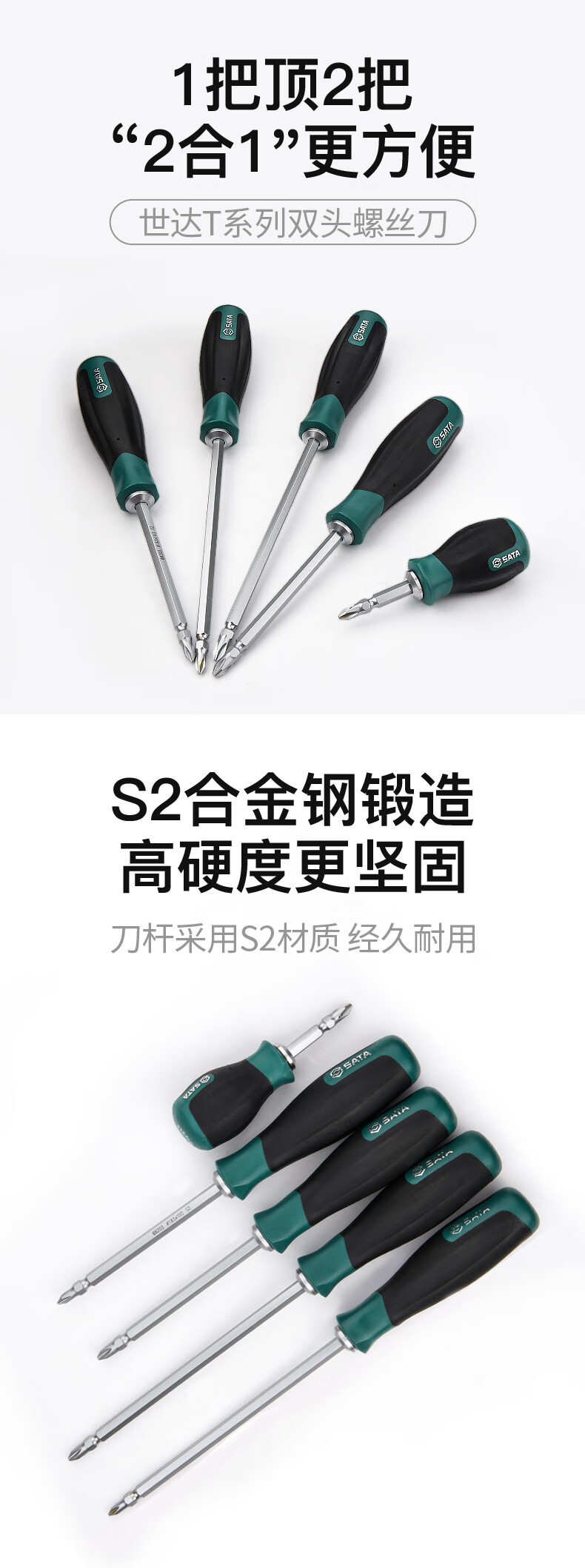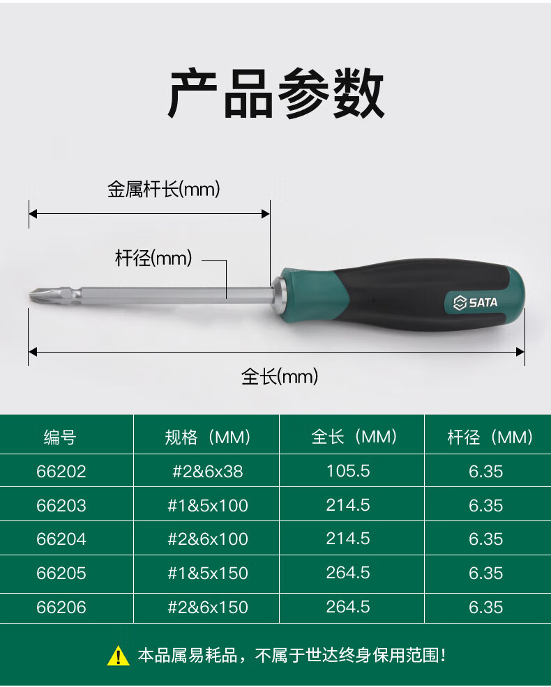 Shida T series dual-purpose screwdriver flat cross double-headed screwdriver S2 alloy steel hard plum blossom flat-blade screwdriver 66204 double-headed #2&6mm shaft length 100mm