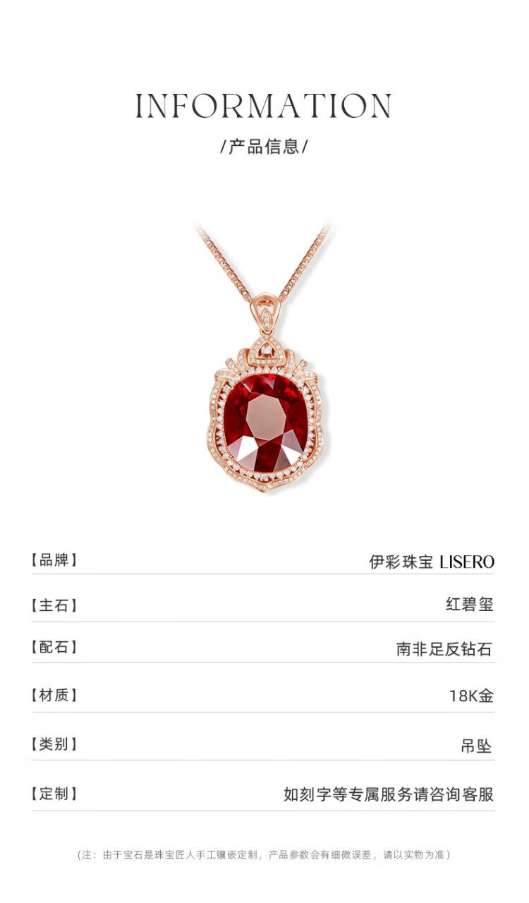 Yicai Jewelry Natural Rubellite Pendant 18k Gold High-end Jewelry for Women Customized Birthday Gift for Girlfriend 17 Carats Pre-sale